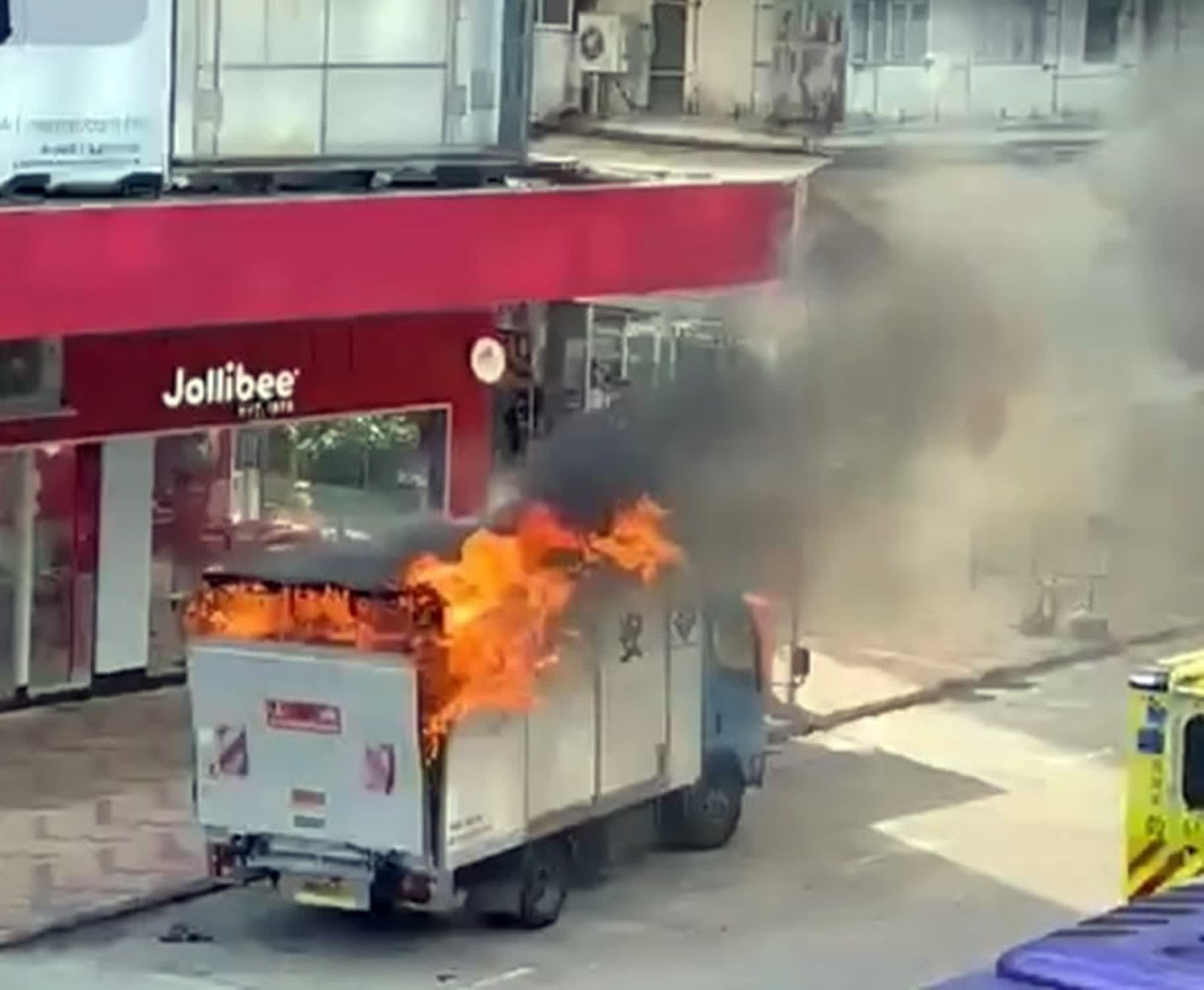 香港文匯報訊(記者 蕭景源)今日(8日)下午約2時18分,一輛密斗貨車在荃灣青山公路269號力生廣場對開冒煙起火,由網上片段可見,火焰和濃煙不斷從貨斗車尾處冒出。消防員接報到場立即封路開喉灌救,迅將火勢救熄,事件中無人傷。警方正調查起火原因,現場交通一度受阻。
