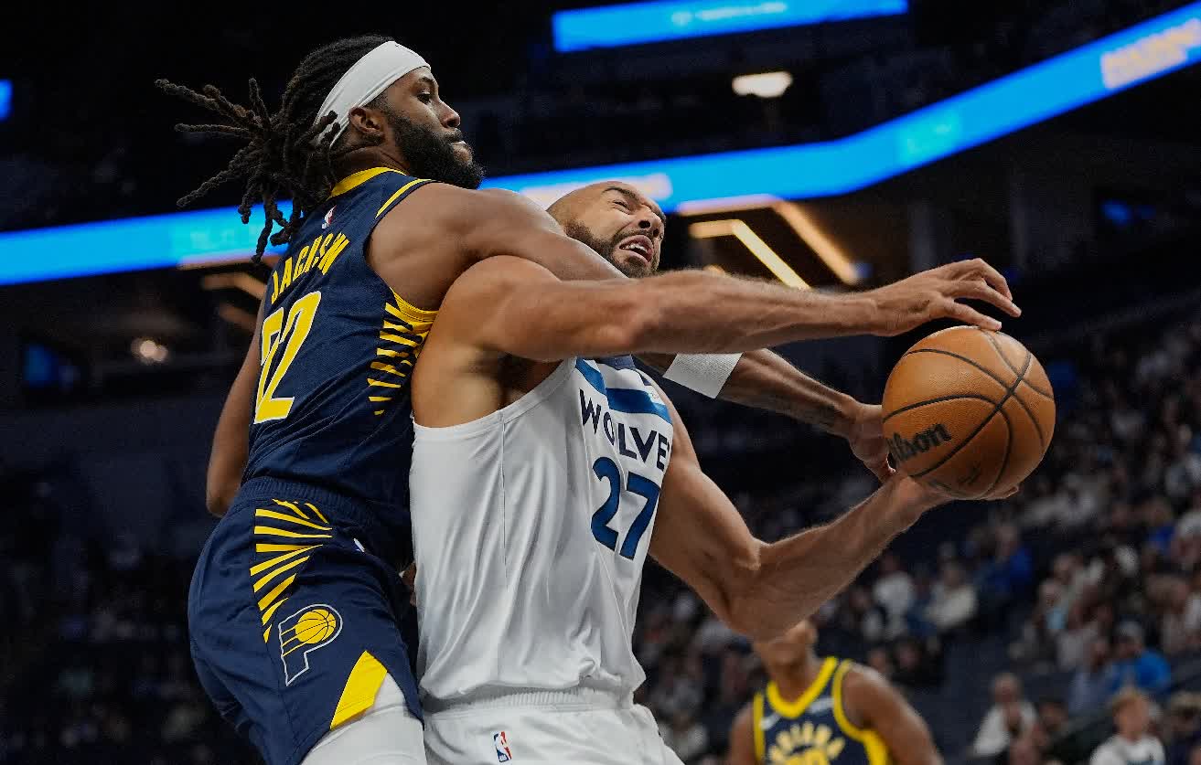 有當家球星夏利畢頓整季缺陣,兼有主力中鋒端拿在今夏離隊的溜馬,是役面對有安東尼愛華士和蘭杜壓陣的木狼,表現卻完全沒有被比下去,更帶着13分領先優勢進入末節,只是木狼尾段打出一波6:0攻勢,令雙方打成124平手要加時分勝負。到加時賽雙方還是互有領先,但木狼最後階段壓哨3分未能命中,溜馬終以1分險勝而回。