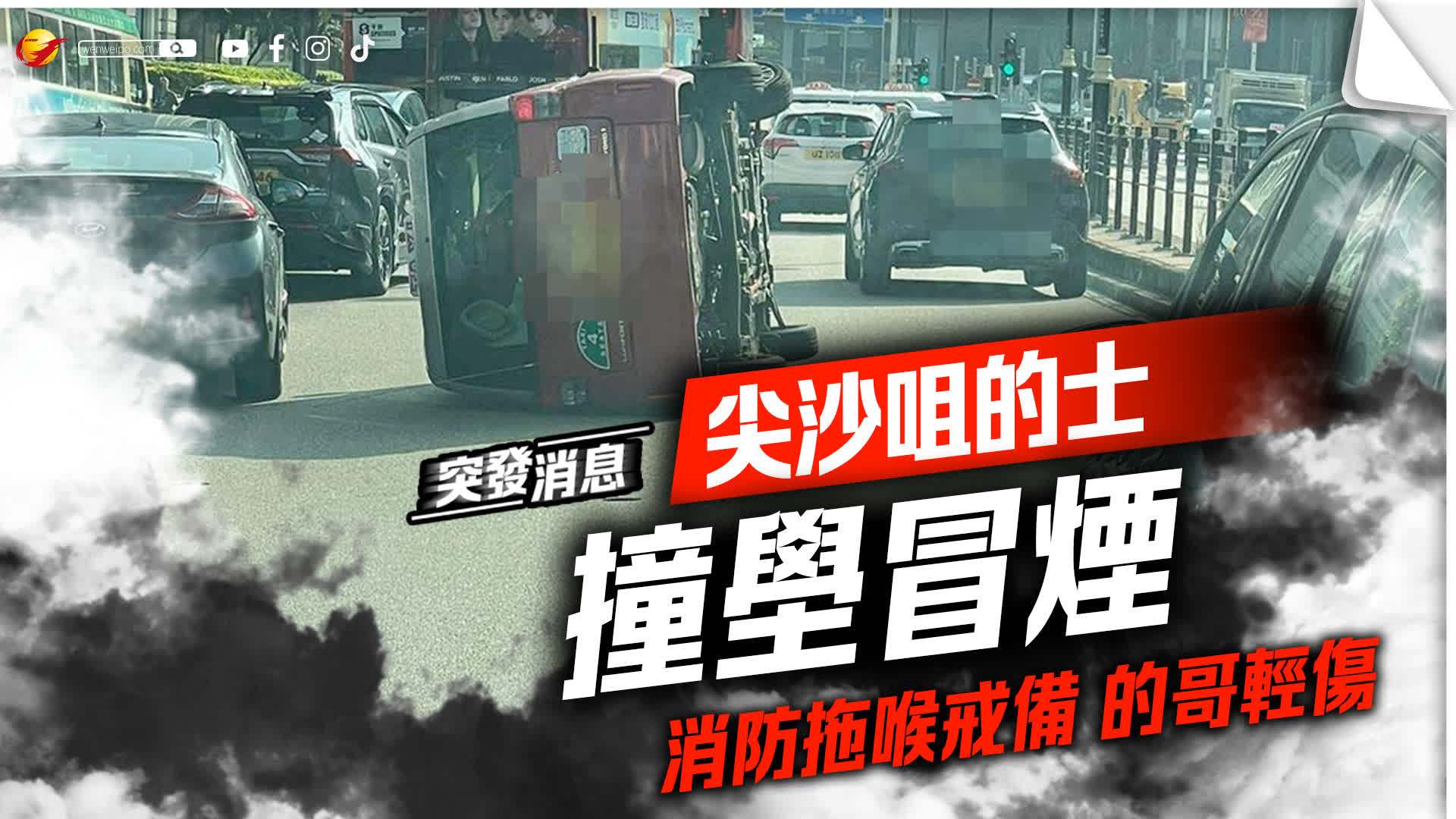 救援人員接報趕至,的哥已自行爬出車廂,他受輕傷,其後在救護車接受治理。據悉,的士翻側後曾經冒煙,期間消防需拖喉戒備,其後證實冒出的白煙是燃燒的石油氣,的士沒有起火。