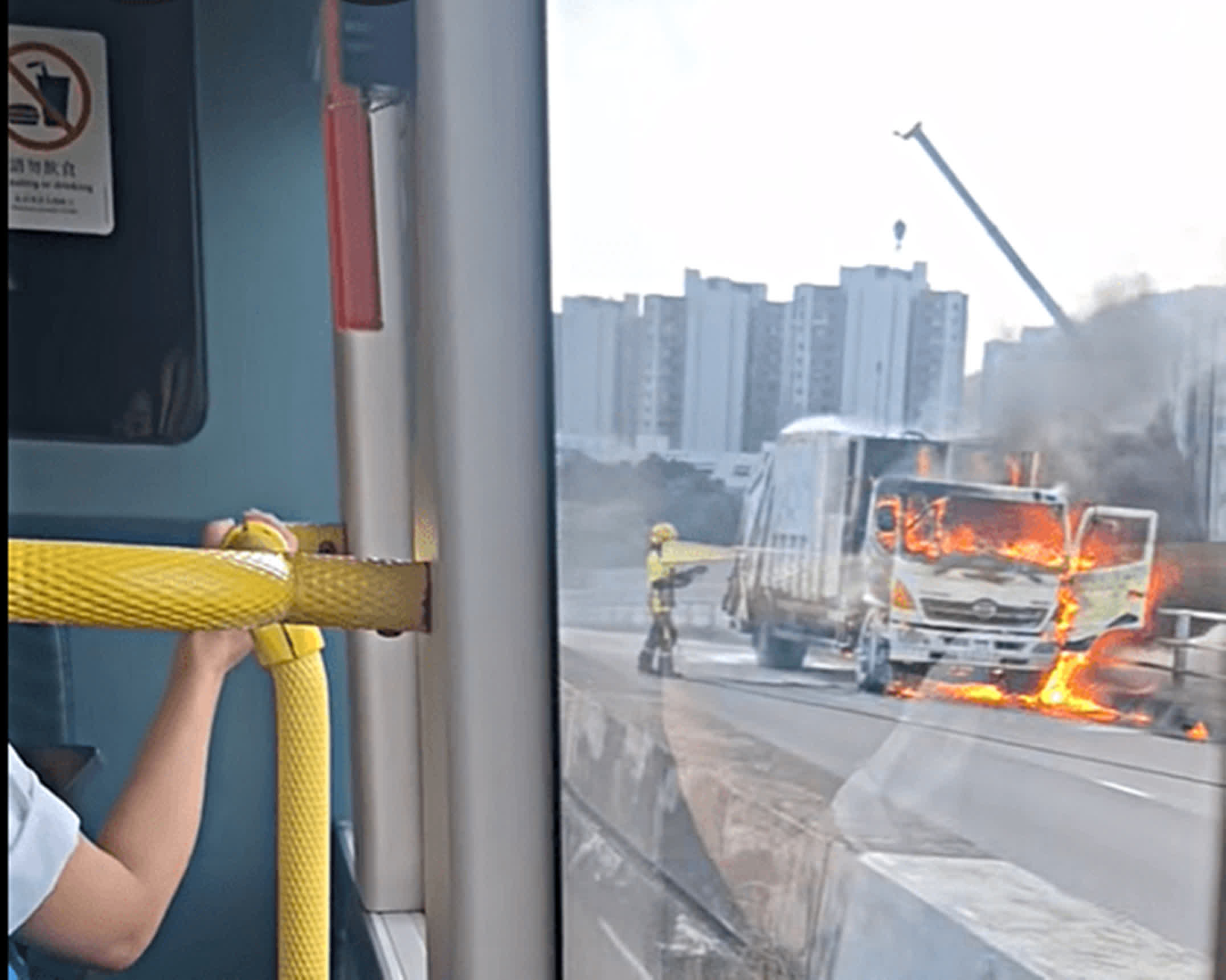 其後消防員到場開喉很快將火救熄,無人受傷,惟駕駛室已嚴重焚毀。受事件影響,現場交通一度受阻。消防和警方正調查火警起因。