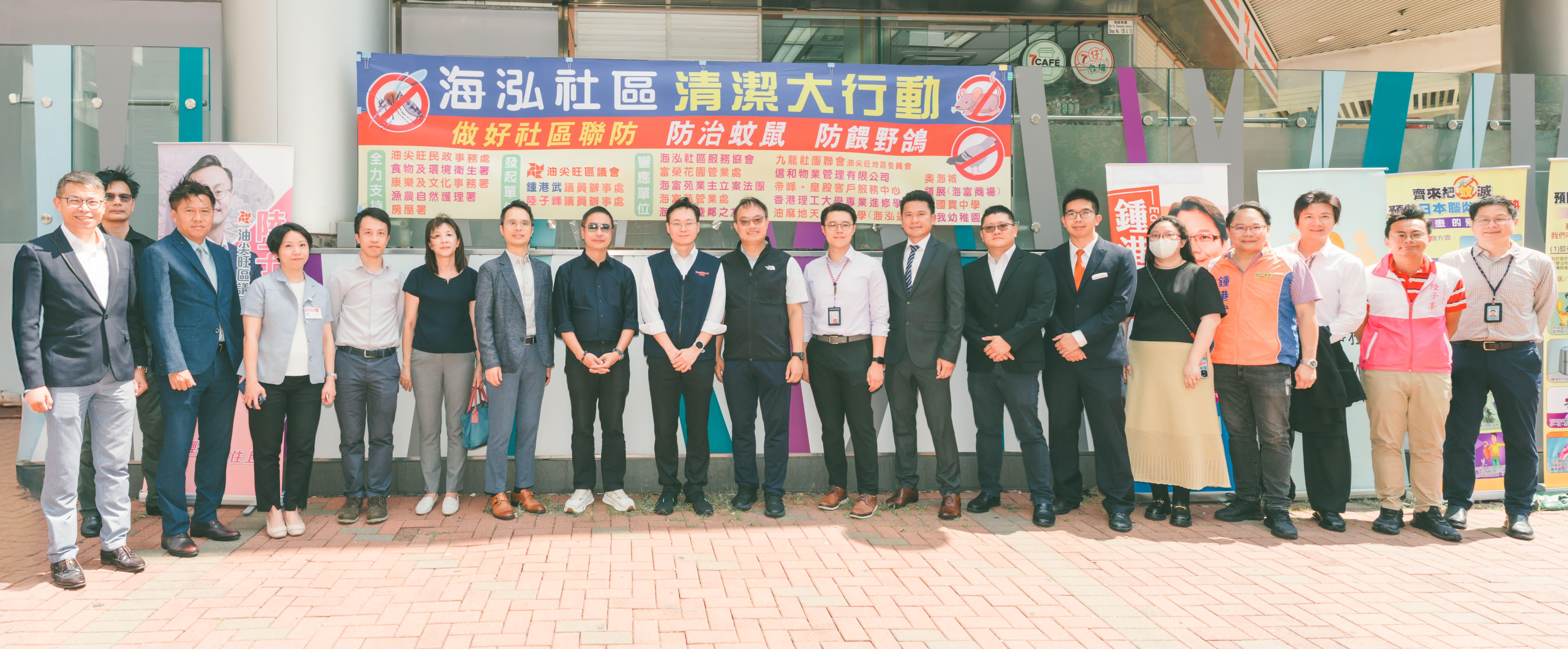 香港文匯報訊 是日,油尖旺區議會鍾港武及陸子峯議員辦事處在旺角海泓道發起「做好社區聯防 防治蚊鼠 防餵野鴿」<海泓社區清潔大行動>啟動禮,獲社區各重要持分單位積極響應,當中包括居民團體、屋苑業主組織及物業管理公司、學校、商場等,油尖旺民政事務處、食環署、漁護署、康文署及房屋署全力支持。現場過百名街坊參與,大家都認同應該集合力量,做好聯防,防治蚊鼠,防餵野鴿。