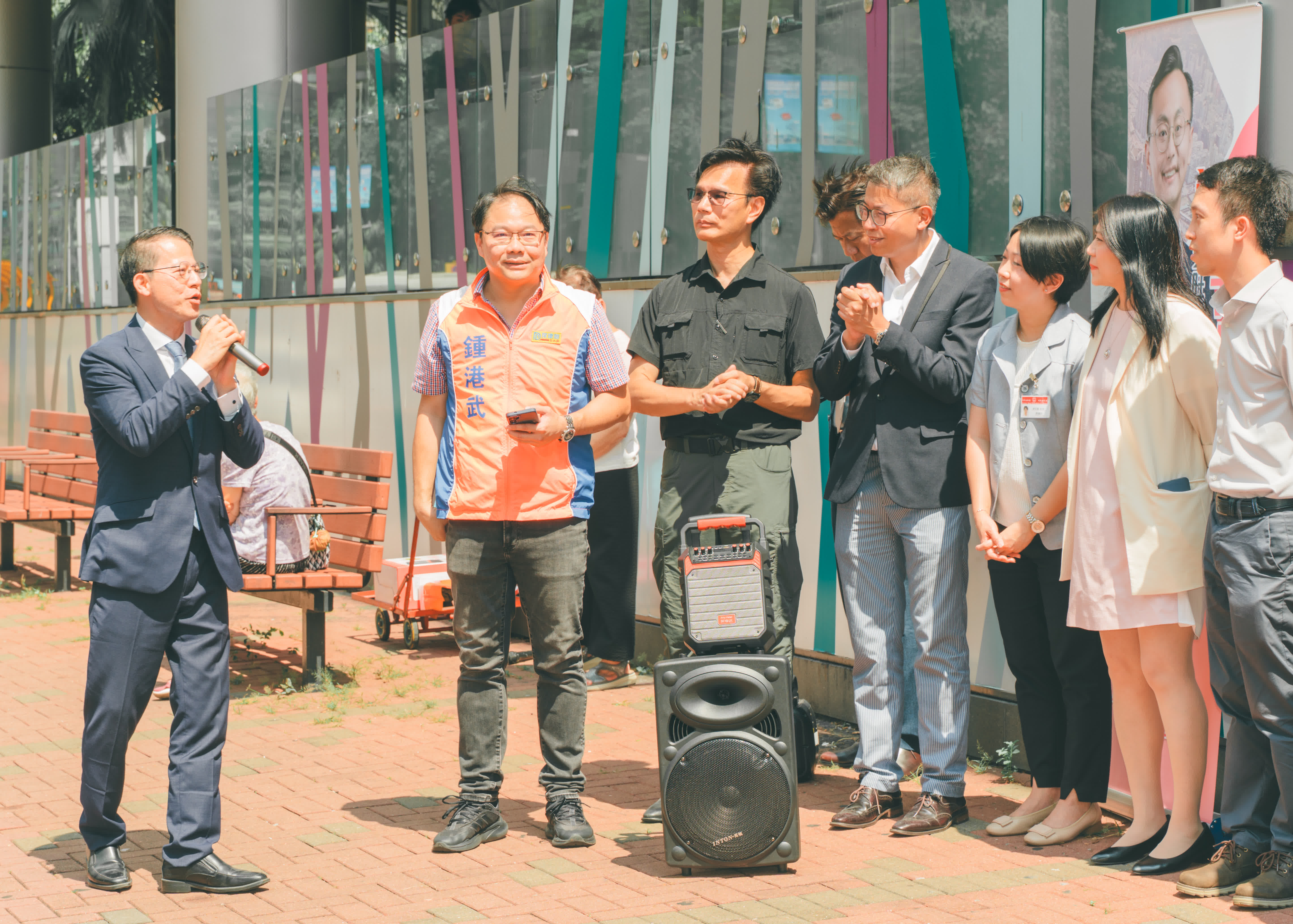 油尖旺民政事務專員兼油尖旺區議會主席余健強在致詞時感謝鍾港武及陸子峯議員舉辦活動,「聯防」意義既聯合兩個小區,也聯合各持份者,以政商模式合力解決地區民生問題。