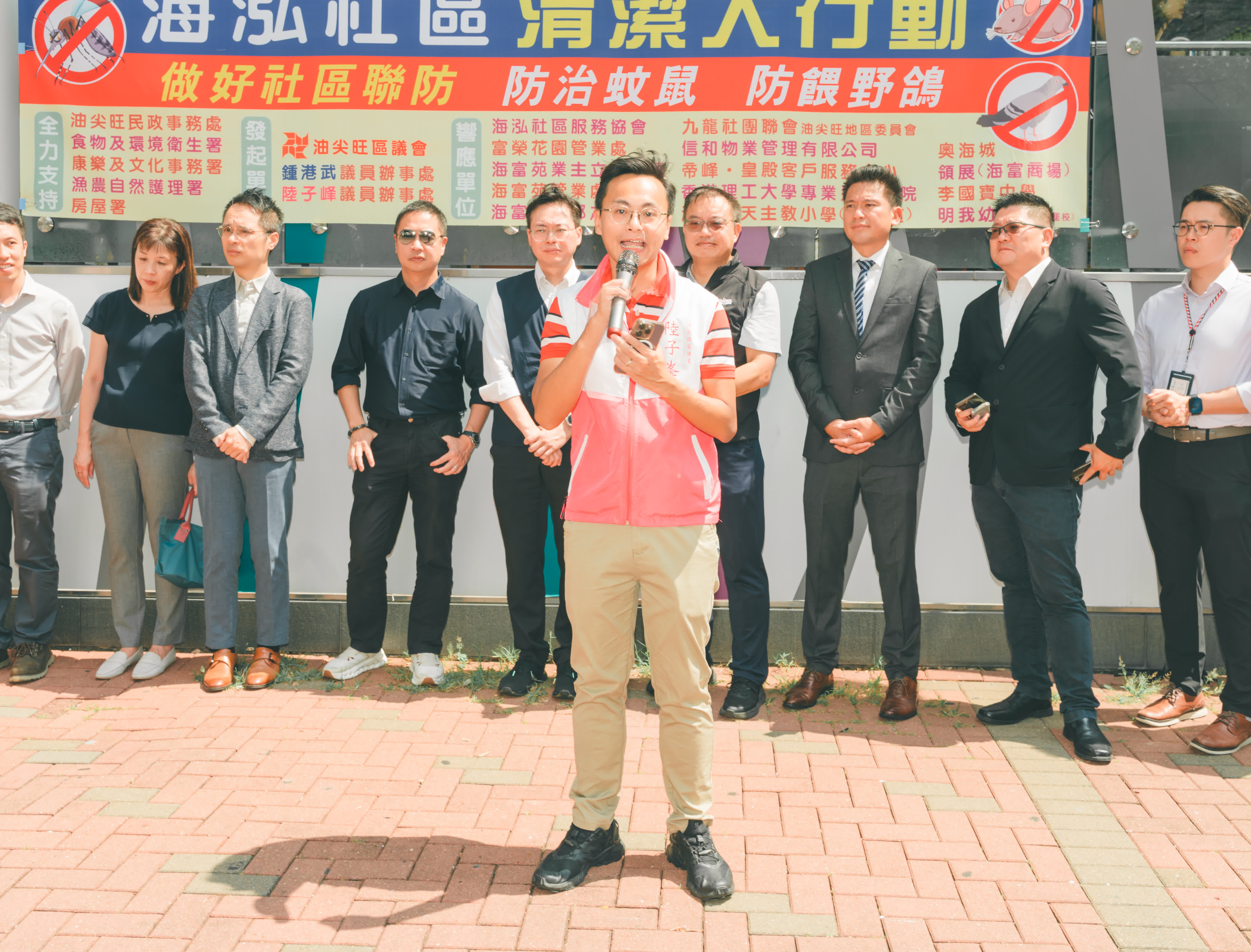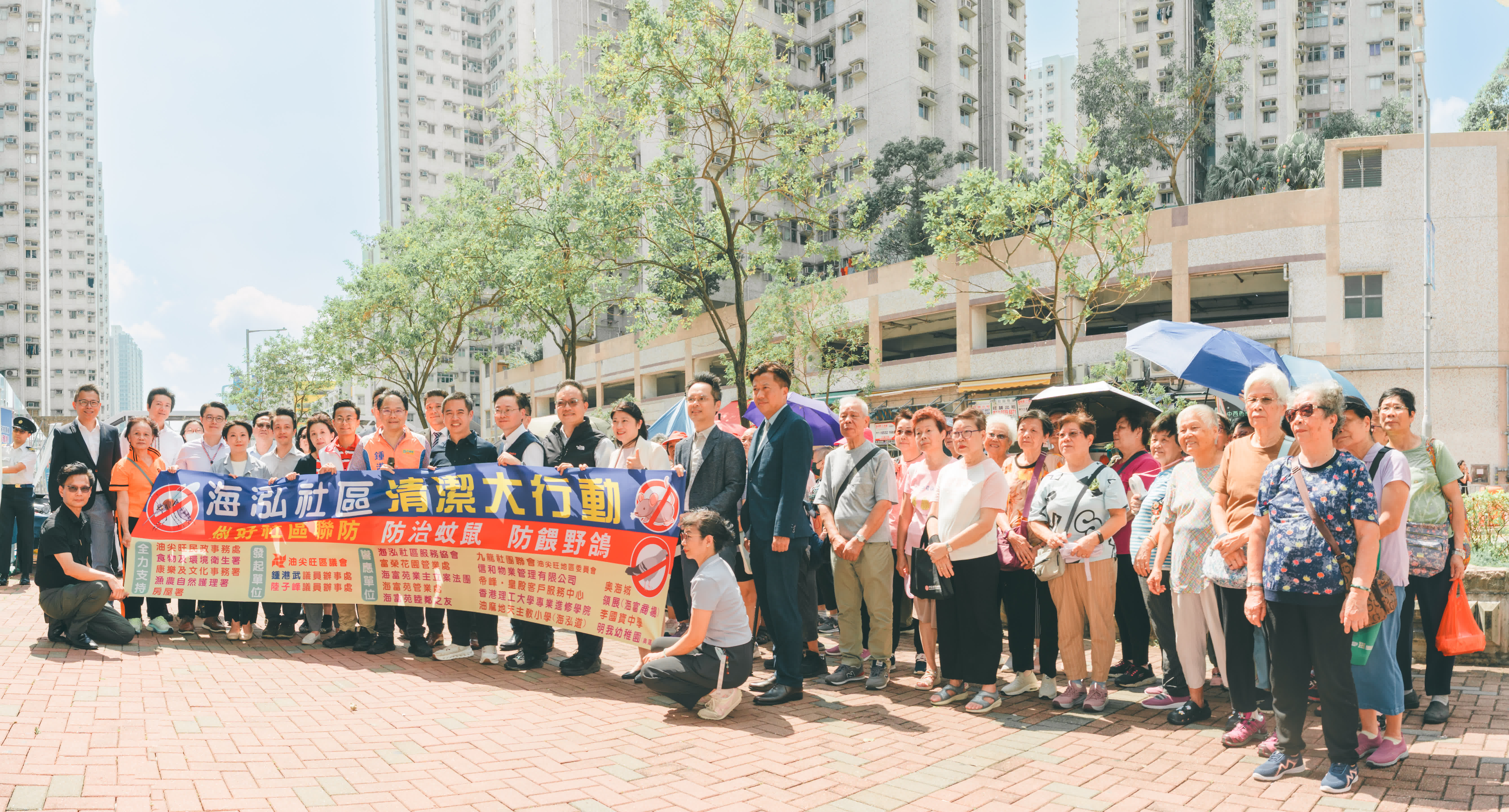 「社區聯防」發起人,油尖旺區議會鍾港武議員及陸子峯議員表示大家的積極響應遠超預期,整個海泓社區的重要持分基本都參與其中,大家群策群力,相信防治蚊鼠防餵野鴿的工作和成效會更到位。今次「社區聯防」聯合兩個小區及各持份者,綜合力量解決社區民生問題,希望能成為社區治理的新方向。啟動禮上食環署及漁護署也同步設置街站,宣傳防治蚊鼠及防餵野鴿資訊。