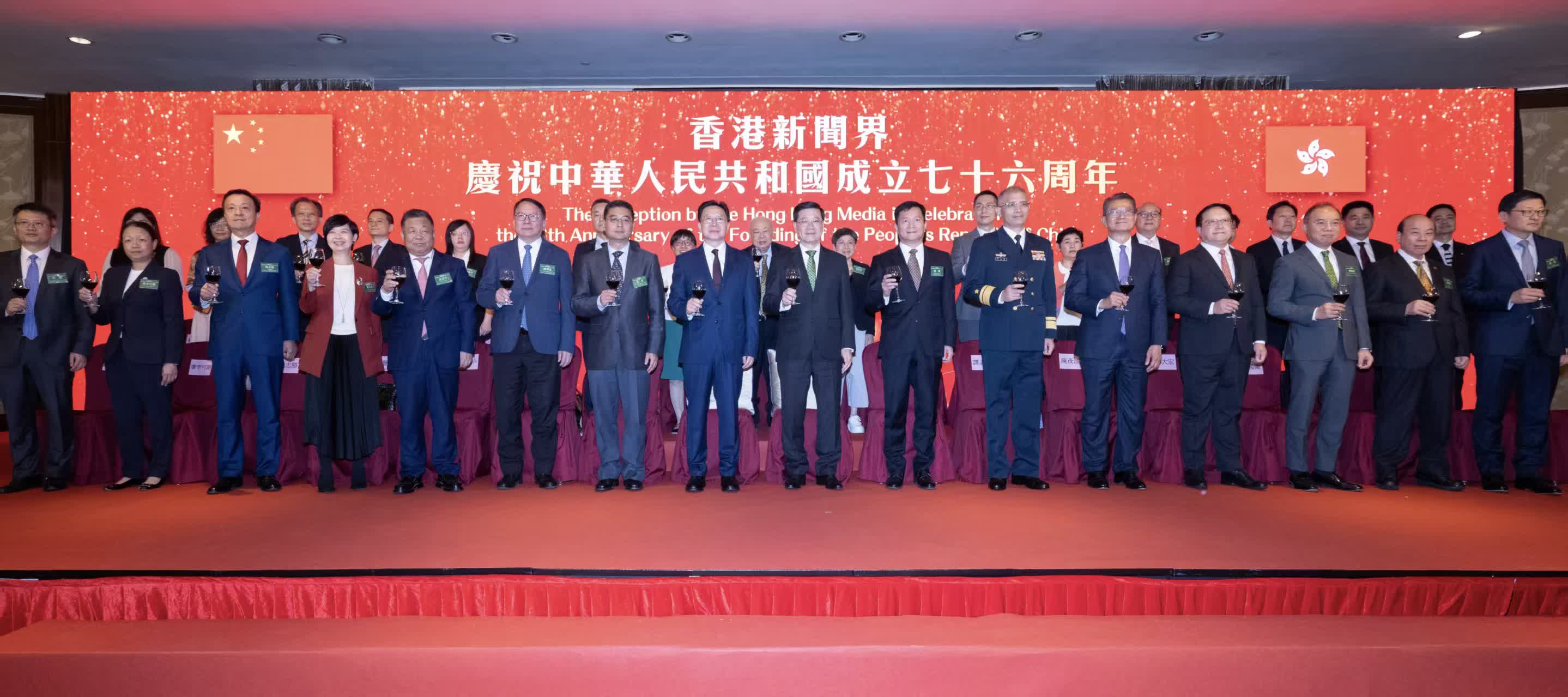 10月9日,香港新聞界舉辦慶祝中華人民共和國成立76周年活動。香港特別行政區行政長官李家超、中央政府駐港聯絡辦主任周霽出席並致辭。