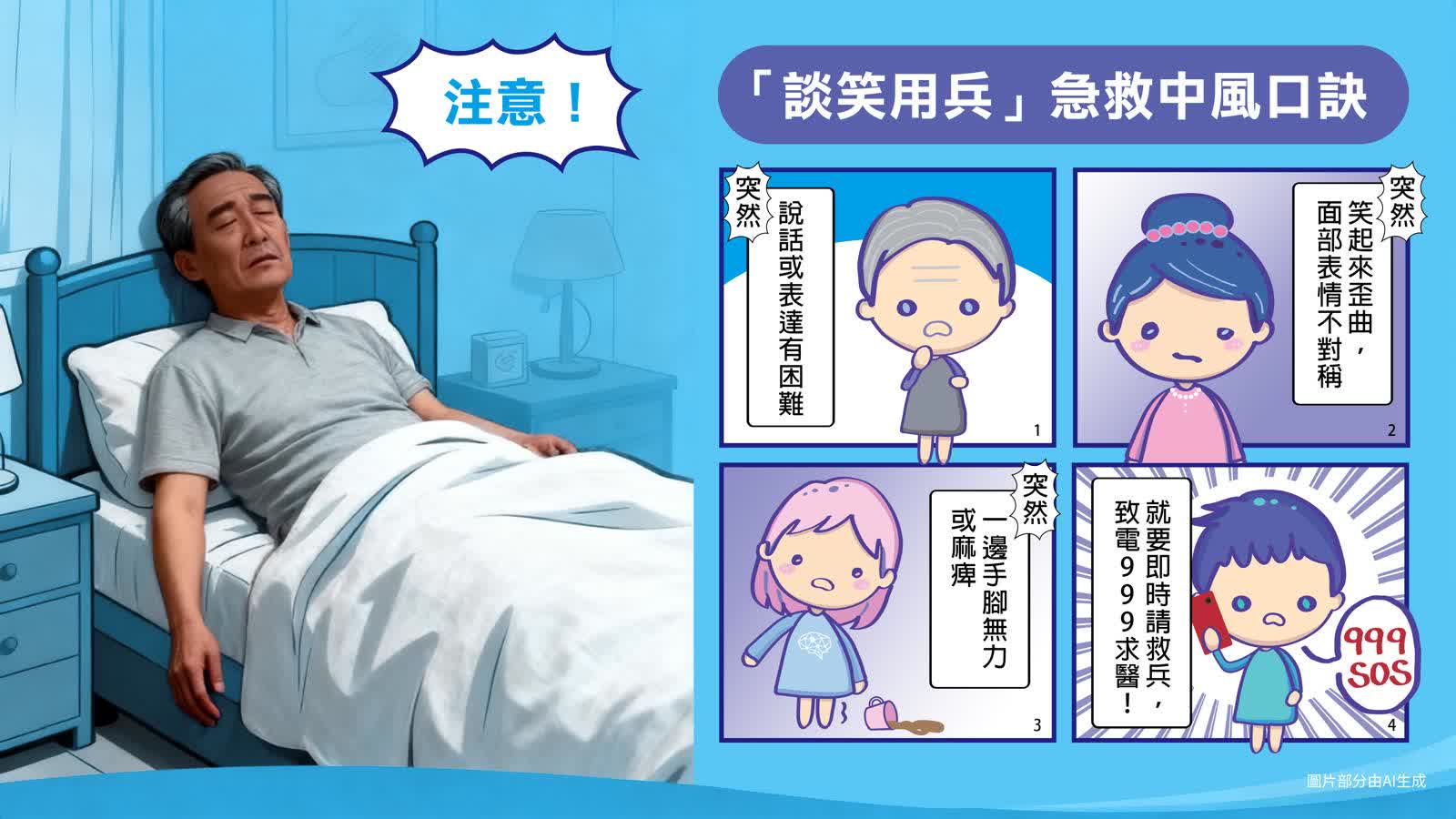 臨床上,筆者曾遇到一位神情無助的伯伯,吃力地詢問:「為甚麼前幾天睡午覺,醒來竟會中風?」再三追問後得知,當日午睡前,他感到左臂麻痺乏力,左臉輕微麻木。其實這些已是中風徵狀,需要立即求醫。