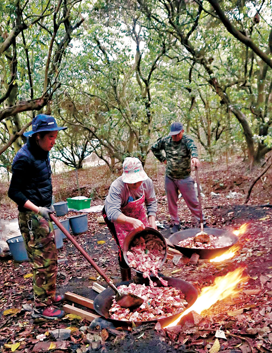 近年吃過幾次山頭,感覺跟平常用冰鮮肉煮的盆菜味道截然不同。純和味真,簡樸雋永,教我欲罷不能。早已減吃澱粉質的米飯至可有可無程度,為了香噴噴的即煮鮮豬肉之萬有引力,追吃好幾碗而無悔。