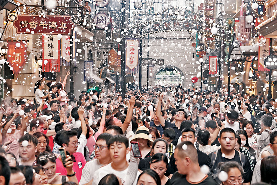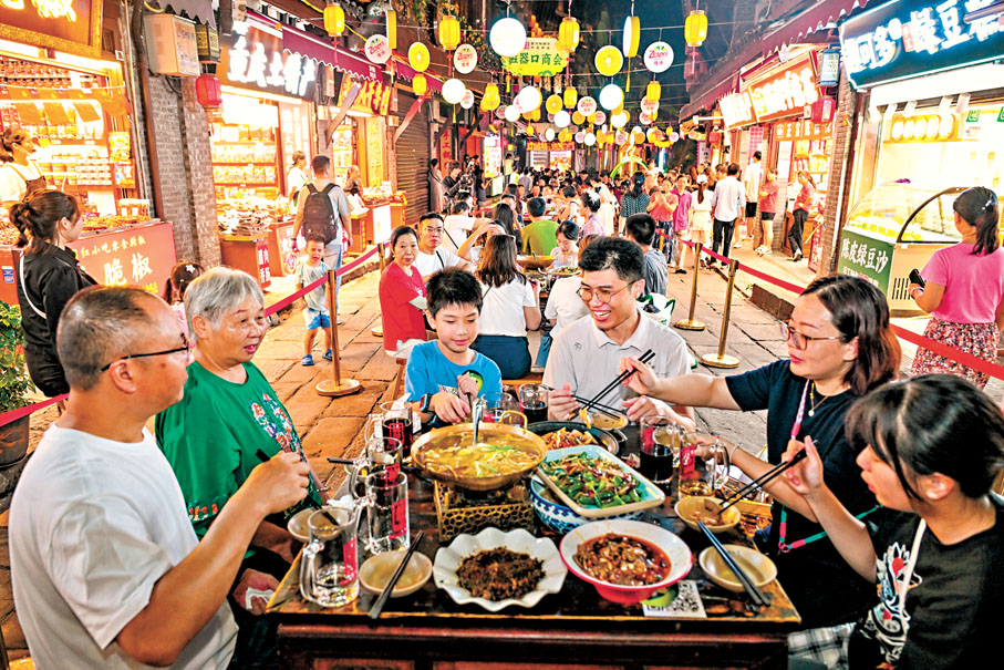 另外,城鄉消費場景協同發力,湖南長沙商圈融合購物與演出,貴州三都水族自治縣以「村馬」賽事串聯長桌宴與文創集市。入境旅遊迎來熱潮,重慶磁器口古鎮、西安大唐不夜城等景區外國遊客增多,文化遊、購物遊等受到外國遊客喜愛。