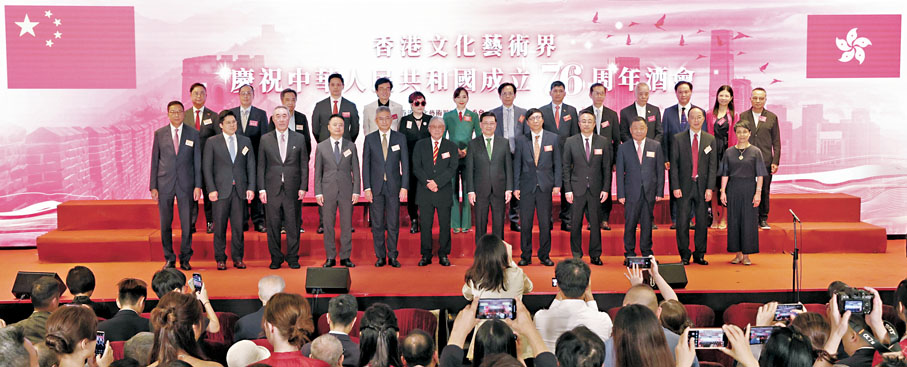 香港文匯報訊(記者 嚴鍇華)由香港文化藝術界國慶籌委會舉辦的香港文化藝術界慶祝中華人民共和國成立76周年酒會昨日在港舉行,一眾本地文化藝術界精英及業界友好聚首一堂,同賀國慶,並共同紀念抗戰勝利80周年。香港特區行政長官李家超致辭時表示,在國家「十四五」規劃的支持下,特區政府積極推動文藝發展,將香港發展成為中外文化藝術交流中心,充分發揮香港中西薈萃的獨特優勢,促進文明互鑑、民心相通。