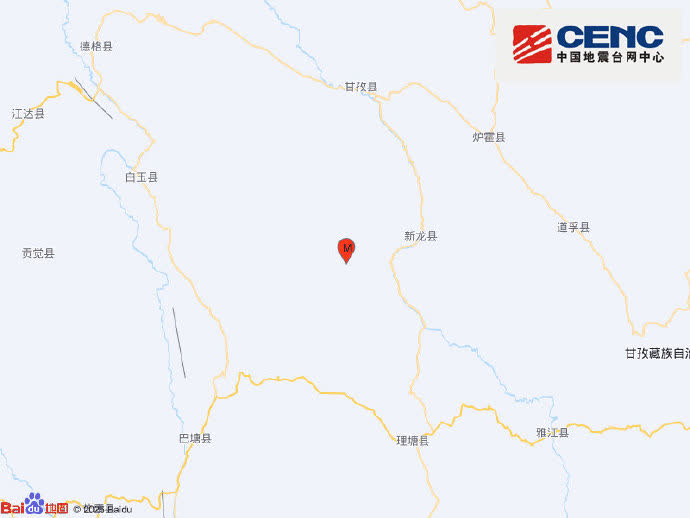 中國地震台網正式測定:10月10日11時10分在四川甘孜州新龍縣(北緯30.84度,東經99.92度)發生3.1級地震,震源深度9千米。