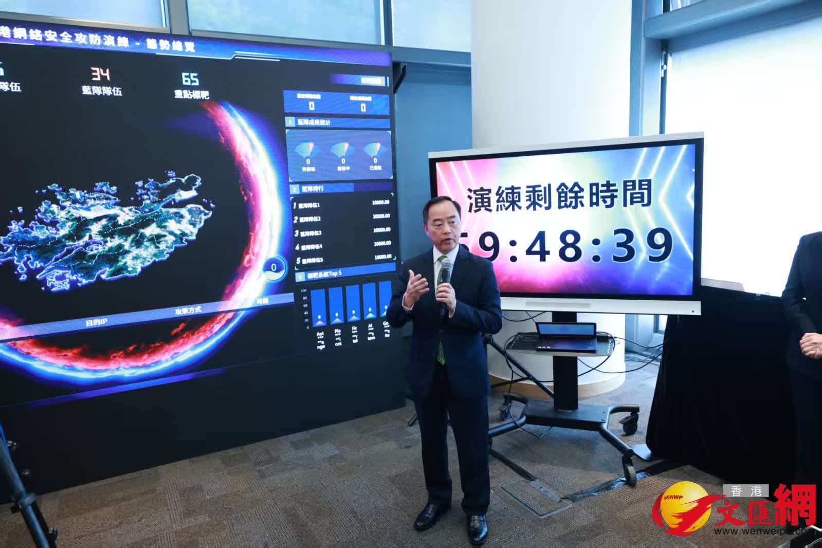 孫東說,數字政策辦公室去年舉辦首屆「香港網絡安全攻防演練」,通過「實兵」、「實網」、「實戰」方式,全方位對參與政府部門和公共機構的安全防護能力進行深度檢驗並提供反饋,提升它們的網絡安全防護及緊急應變能力,達至以攻築防的效果。今年數字辦再接再厲,整體演練規模進一步擴大,涵蓋更多的公共服務,也正好為即將舉行的第十五屆全國運動會及立法會換屆選舉做好網絡安全的準備。