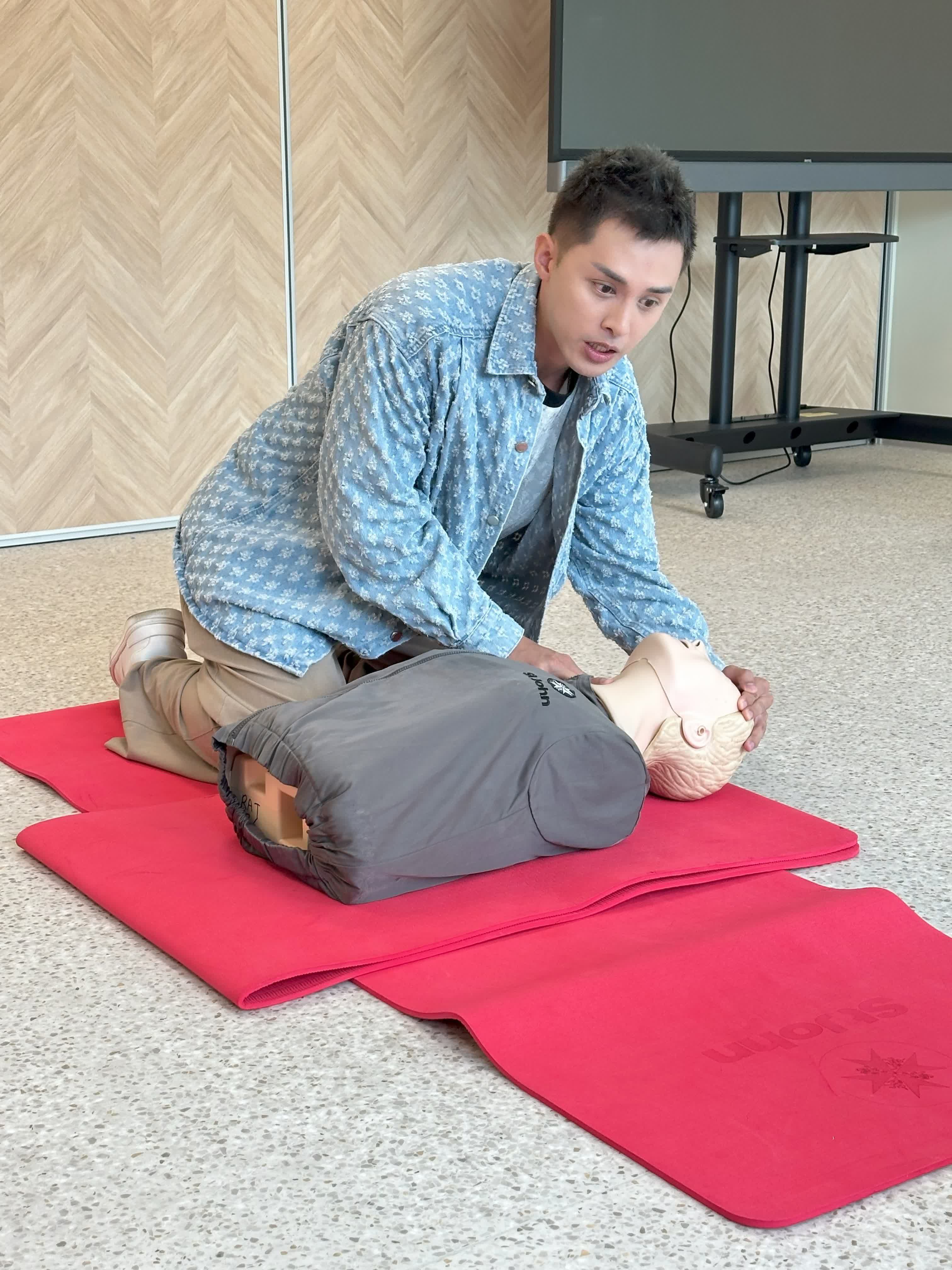 他續指:「非常感謝聖約翰救傷機構的悉心安排,讓我和Windy能夠一同參與課堂,學習CPR及使用AED。雖然我早年在美國求學時曾經修讀過相關急救知識,但畢竟已有一段時間沒有重新學習。今次課堂內容大部分理論與以往相似,但經歷疫情後,部分程序已作出改良。例如以往CPR通常會配合人工呼吸進行,但現時已不再主張這個做法,而是以膠囊面罩復甦器(BVM)取代,既更合乎衞生原則,也能減低傳染病的風險。」