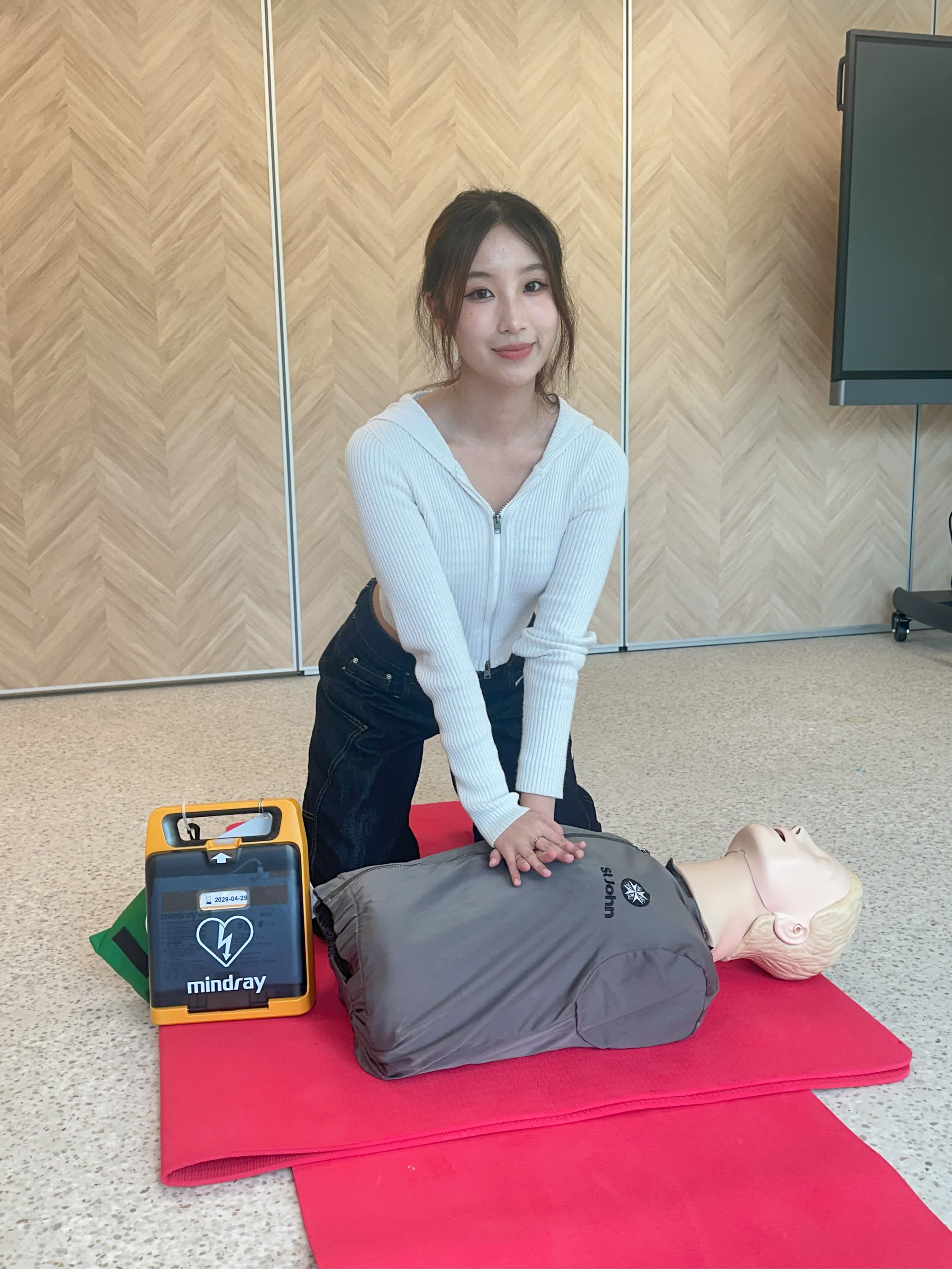 首次接觸CPR及AED課程的Windy坦言感到新鮮又具挑戰性:「完成訓練後才發現急救並不容易。原以為只是胸外按壓的簡單程序,卻需要完整、不可缺的多個步驟,少了一環都可能對傷者造成傷害。這次學習讓我對急救知識有更深入的理解,也感到很榮幸能參與,為日後幫助他人作好準備。」