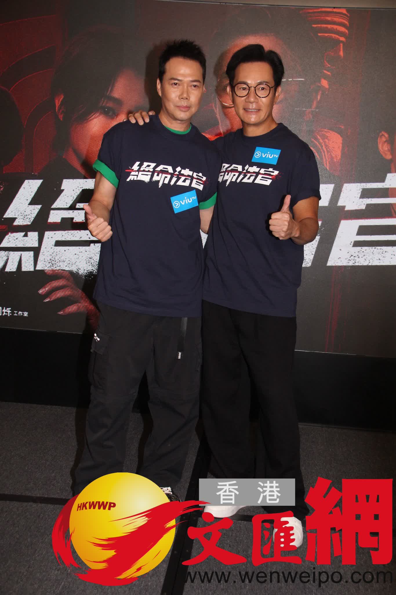 香港文匯報訊(記者 達里)張家輝、胡杏兒、張兆輝、謝天華等今日宣傳在ViuTV播出的新劇《絕命法官》,杏兒更帶同剛過8歲生日的大仔到場。提到劇集將正面對撼TVB由宣萱演出的《巨塔之后》,家輝笑稱下次要捉宣萱一起演出續集,杏兒就表示宣萱也演過法官和擅長背對白,相信合作一定有火花。家輝再出演劇集,他坦言曾擔心「回塘」(指魚苗轉大塘後沒有長大,需退回小魚塘,形容降級),幸好反應理想。