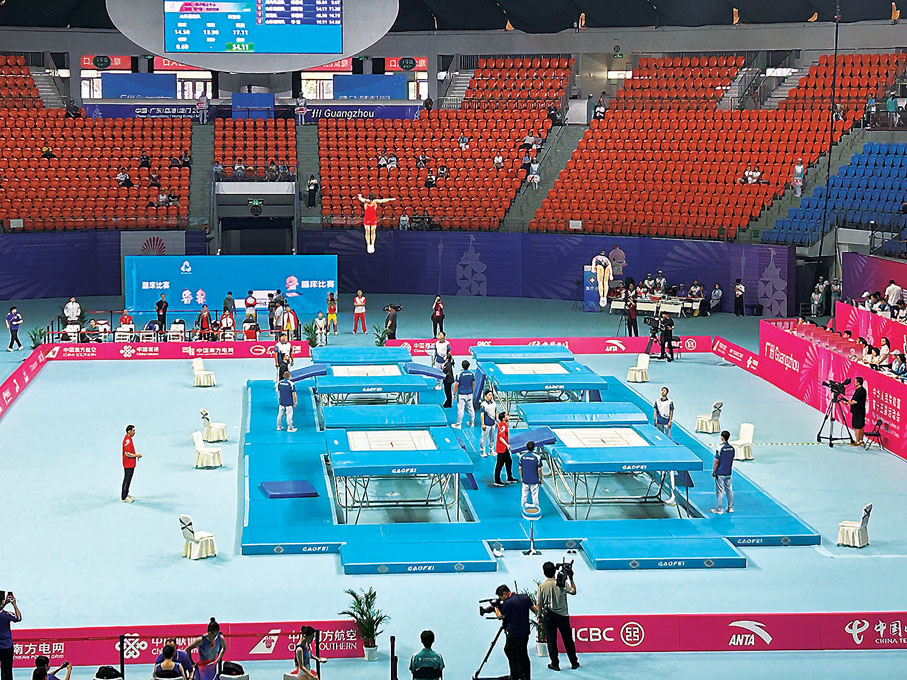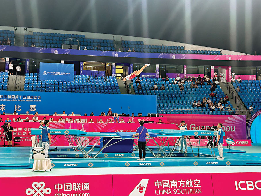 昨日(10日)進入十五運會開幕式倒計時30天,當天迎來10月份首場十五運會競賽項目賽事,十五運會體操(彈床)項目在廣州體育館開賽。彈床是十五運會競賽開賽以來首個有現役奧運冠軍參賽的項目,東京奧運會女子彈床金牌選手朱雪瑩代表天津隊出戰,香港彈床隊則派出男女各一名曾參加亞運的選手參賽,是港隊歷史首次參加全運會彈床比賽。首場預賽,港隊面對高手如雲的內地隊伍,最終無緣晉級決賽,接下來會繼續以觀眾身份留在賽場觀摩學習,加強交流。●香港文匯報記者 敖敏輝 廣州報道