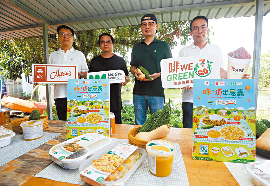 香港文匯報訊(記者 李千尋)每3噸餐前廚餘可轉化為1噸無農藥、無化肥的優質農作物。美心集團擴展「WeGen farming 再生農業」計劃,本月起與7-Eleven(七仔)合作,回收7CAFÉ咖啡渣以轉化為酵素,用以增強土壤營養,進一步提升農作物品質與產量。美心的合作夥伴、本地農場「鴻日農莊」利用咖啡渣酵素種植沖繩苦瓜以及奶油南瓜,並用於7-Eleven本周三起發售的3款新品,包括涼瓜牛肉飯、南瓜鹹蛋雞粒炒飯及南瓜湯,而這亦是「WeGen farming」農作物首次應用於7-Eleven產品。
