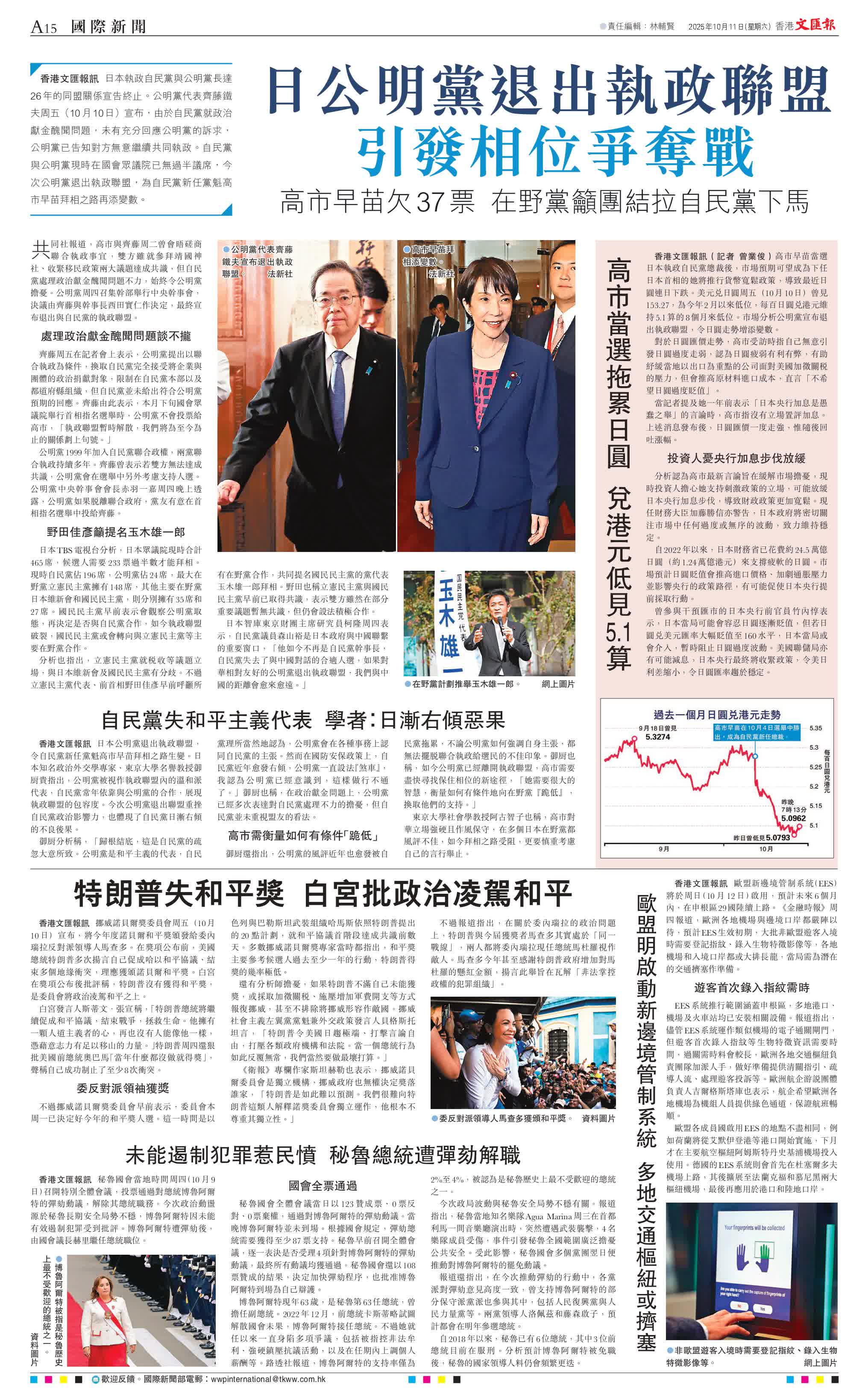 香港文匯報訊 挪威諾貝爾獎委員會周五(10月10日)宣布,將今年度諾貝爾和平獎頒發給委內瑞拉反對派領導人馬查多。在獎項公布前,美國總統特朗普多次揚言自己促成哈以和平協議、結束多個地緣衝突,理應獲頒諾貝爾和平獎。白宮在獎項公布後批評稱,特朗普沒有獲得和平獎,是委員會將政治凌駕和平之上。