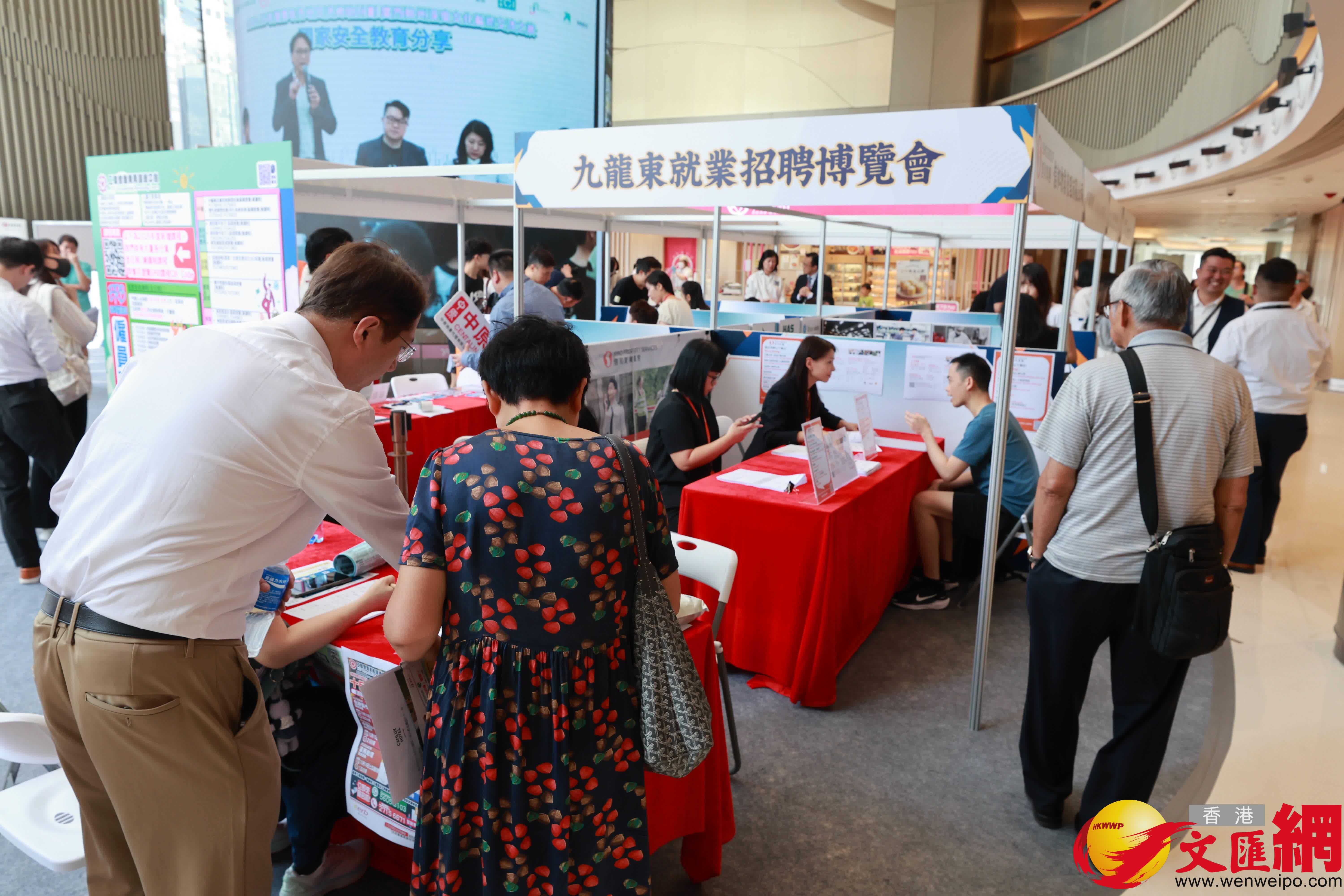 香港文匯報訊(記者 李千尋)九龍東辦事處聯同工聯會職業發展服務處昨日開始一連兩日於觀塘裕民坊商場一樓中庭聯合舉辦「九龍東就業招聘博覽會」,匯聚逾20間機構,提供近3,000個職缺。今日共設有14間機構攤位及1個移動攤位,另有一面自主搵工空缺展板列出60個崗位供市民查詢。