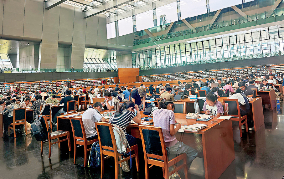 那麼在信息唾手可得的時代,為什麼大家越來越愛走進圖書館?「沉浸式學習」「免費」是不少讀者給出的共同答案。「在這裏學習效率更高。」經常到國家圖書館上自習的劉小姐告訴香港文匯報記者,自己正在積極準備考公,圖書館資源豐富且免費,想要查什麼資料很方便。她每次來都從開館待到閉館。「當然,我並非天生自律,是周圍認真學習的人,給了我一種無形的推力。這種氛圍之下偷懶都不好意思,更別提玩手機,東張西望了。」