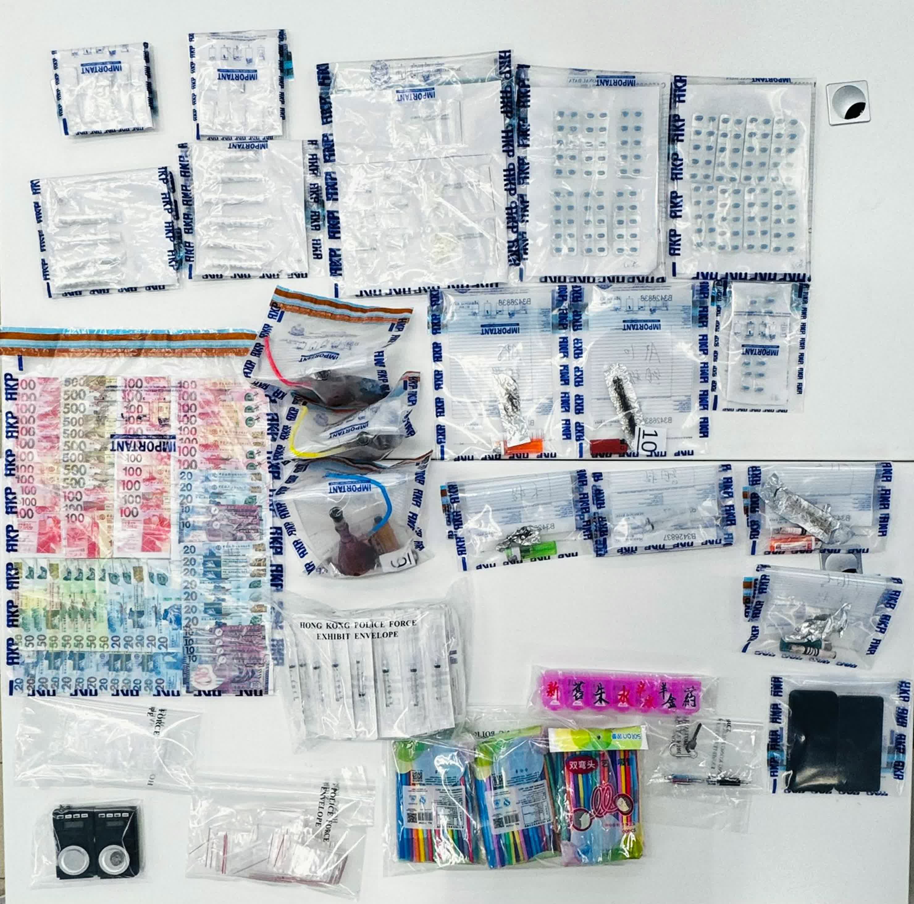 行動中,警方一共檢獲約71.6克懷疑海洛英、約23.9克懷疑「冰」毒、約18克懷疑氯胺酮(K仔)、約263克懷疑霹靂可卡因、約23.7克懷疑可卡因、199粒「藍精靈」、49粒懷疑依托咪酯煙彈(太空油煙彈)及一批懷疑吸食毒品工具,包括「冰壺」、錫紙及打火機等,總值約36.1萬元。