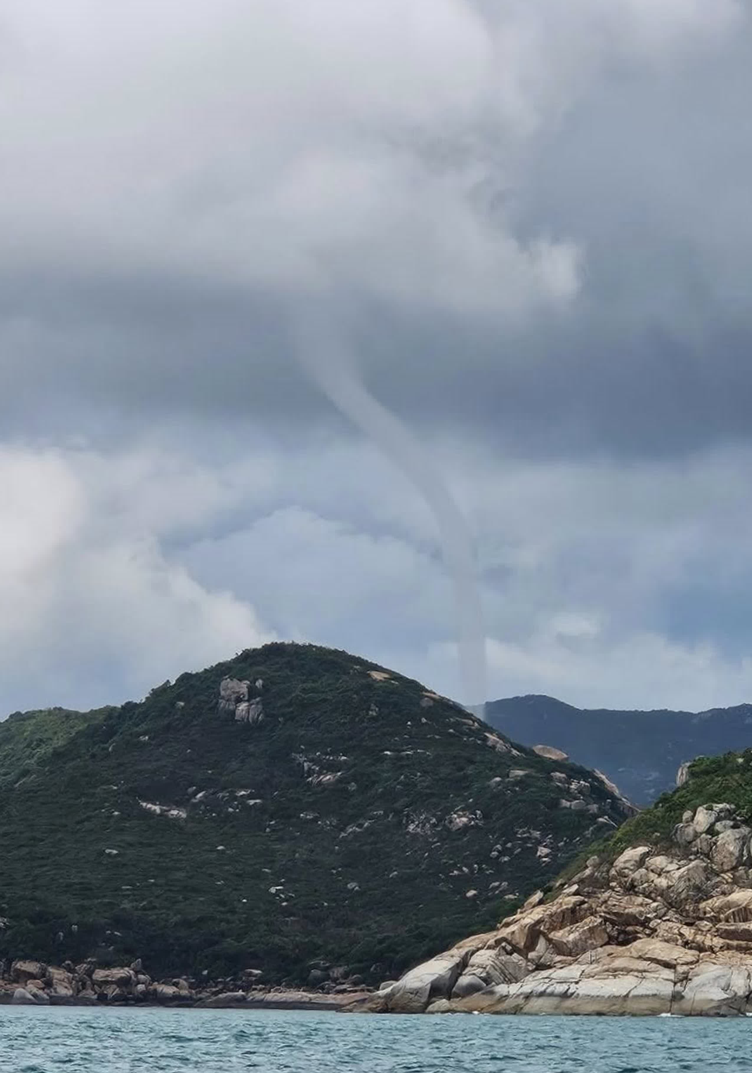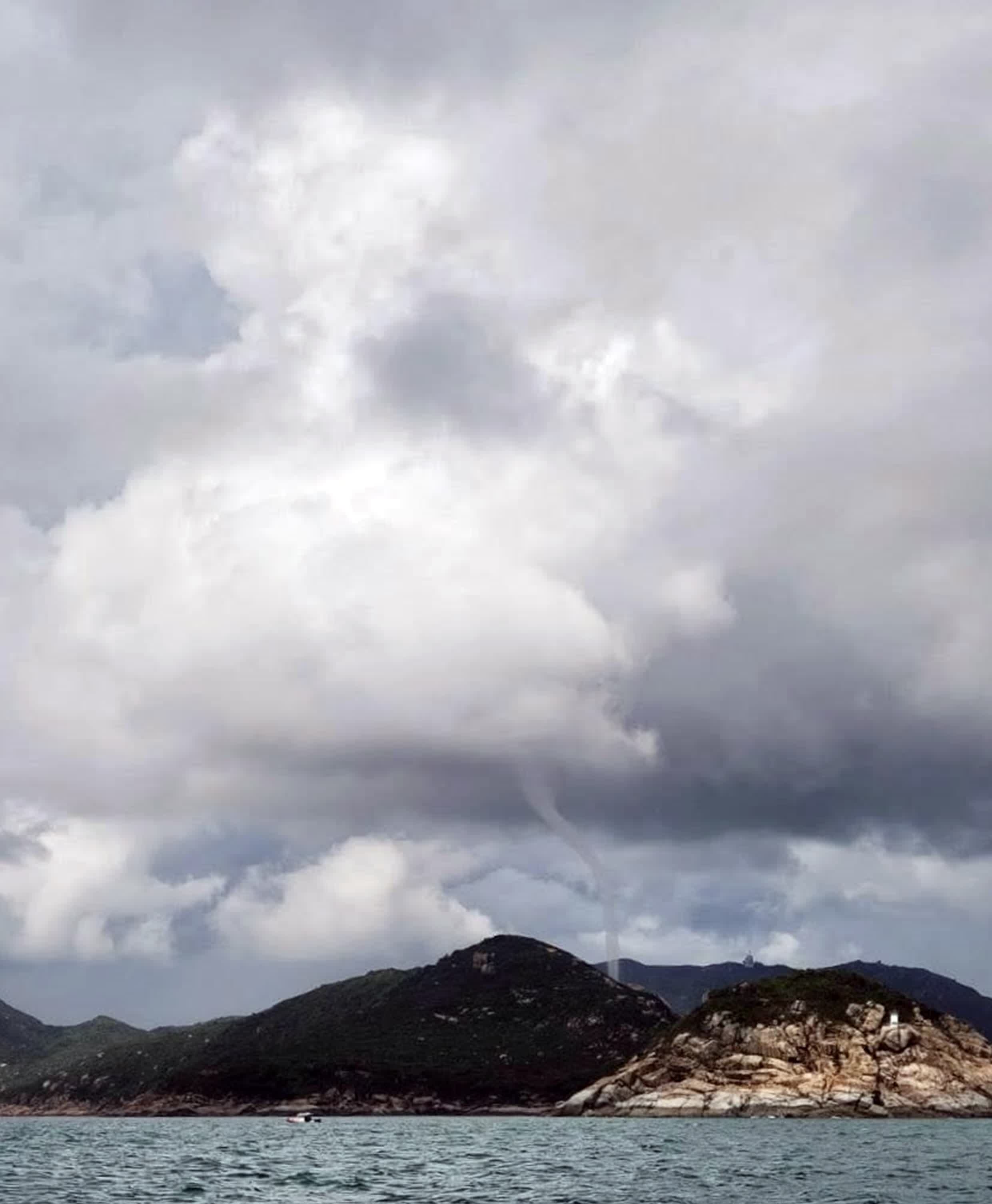 香港文匯報訊(記者 蕭景源)香港天文台表示今日(12日)下午近1時,有市民在南丫島附近目撃水龍捲。據有關圖片可見,當時現南丫島天空烏雲密布,海面出現一條水龍捲高聳入雲,蔚為奇觀。