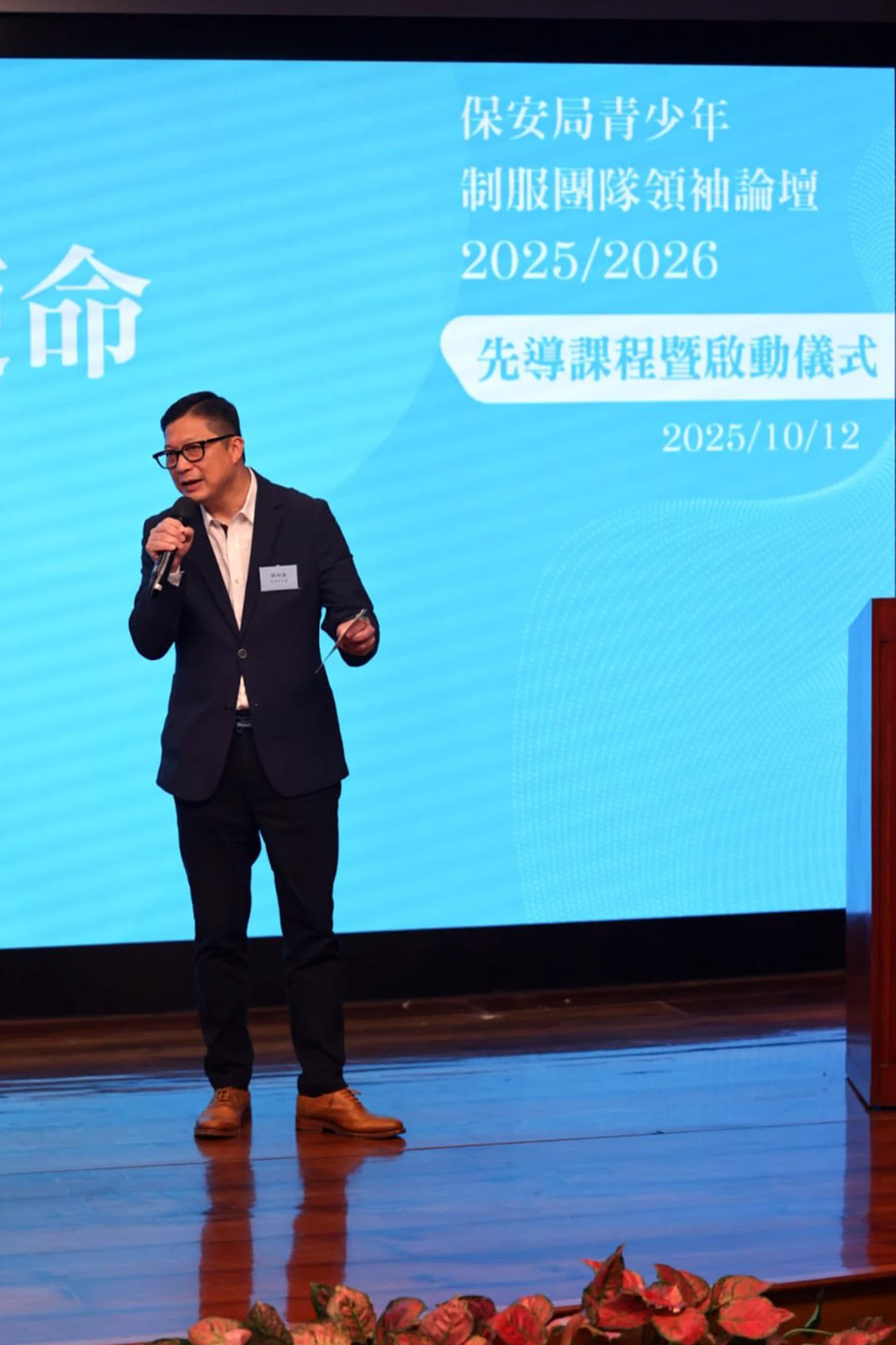 又指,回望過往三屆領袖論壇,見證有學員畢業後投身政府、紀律部隊、律師行業、教育界、傳媒、金融同非牟利組織等,在不同領域服務社會,令人欣慰。他寄望今屆學員可以傳承學長的優秀往績,守護論壇旳「金漆招牌」,把握機會成長為國家的未來棟樑。這亦正正是領袖論壇的初心,播下種子,培育心繫家國、勇於擔當的青年領袖。