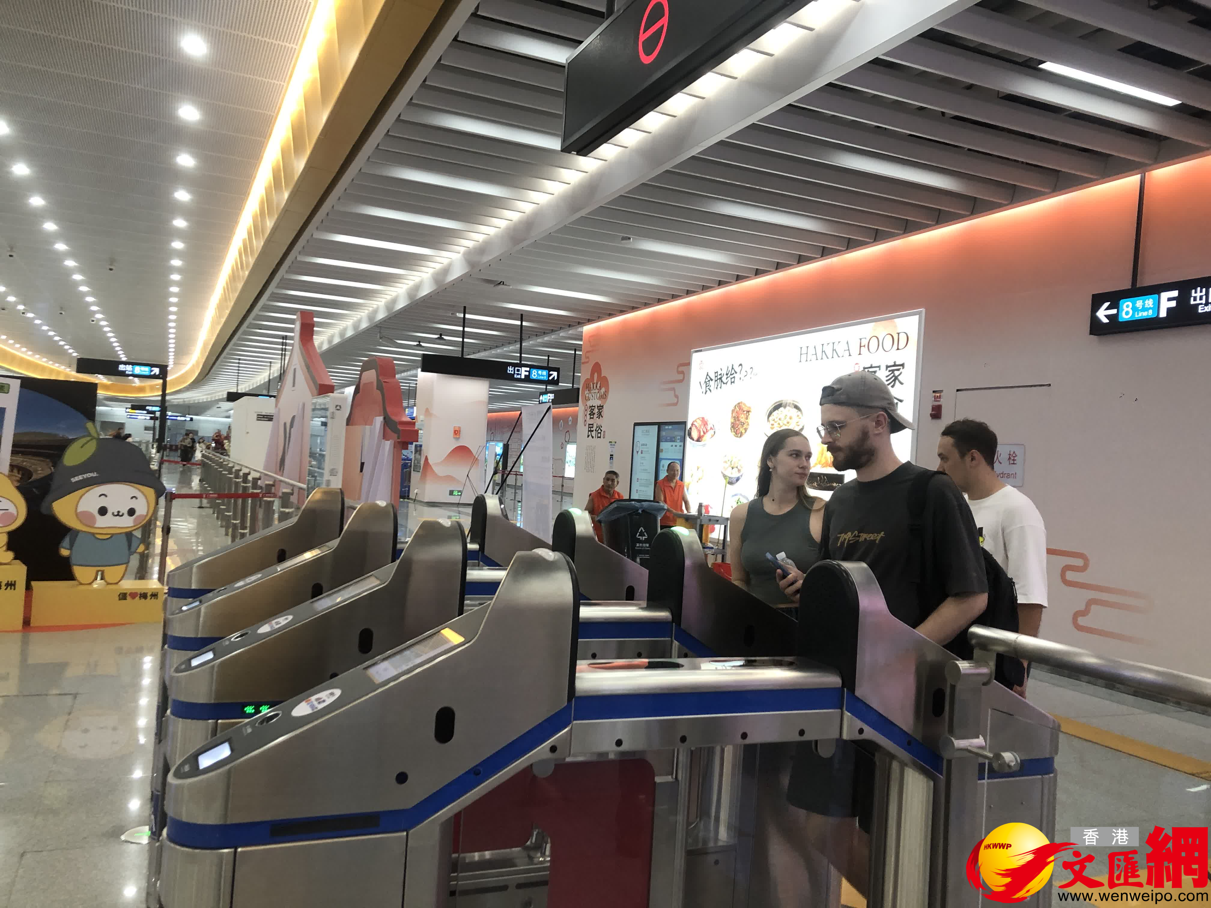 記者12日在廣州地鐵不同站點看到,部分閘機旁邊設有指引牌,以中英文標出「歡迎使用上述銀行卡『拍卡過閘』」。同時,在閘機「拍卡」感應區域上也標有不同的卡組織標識,讓境外旅客一目了然。
