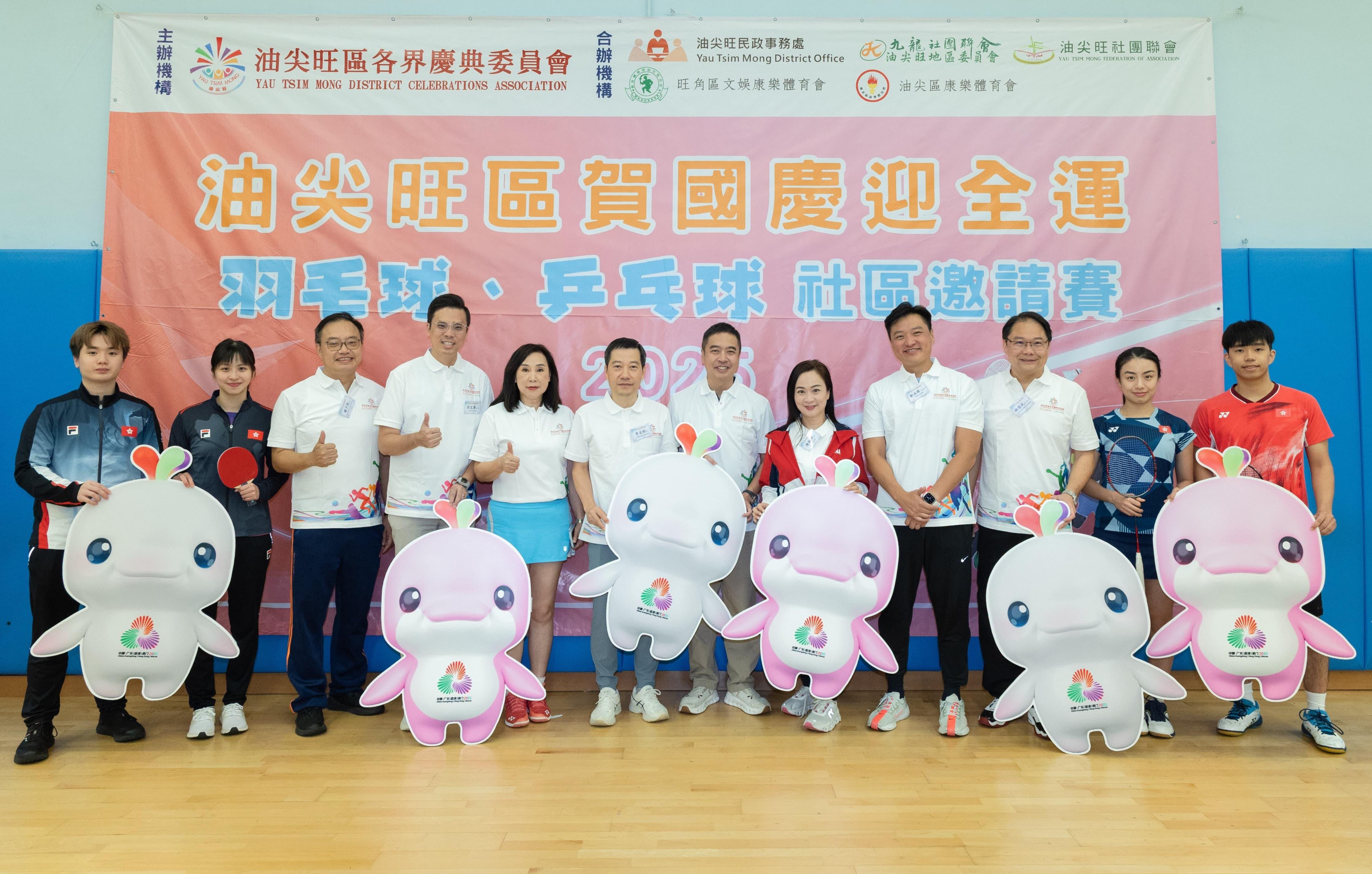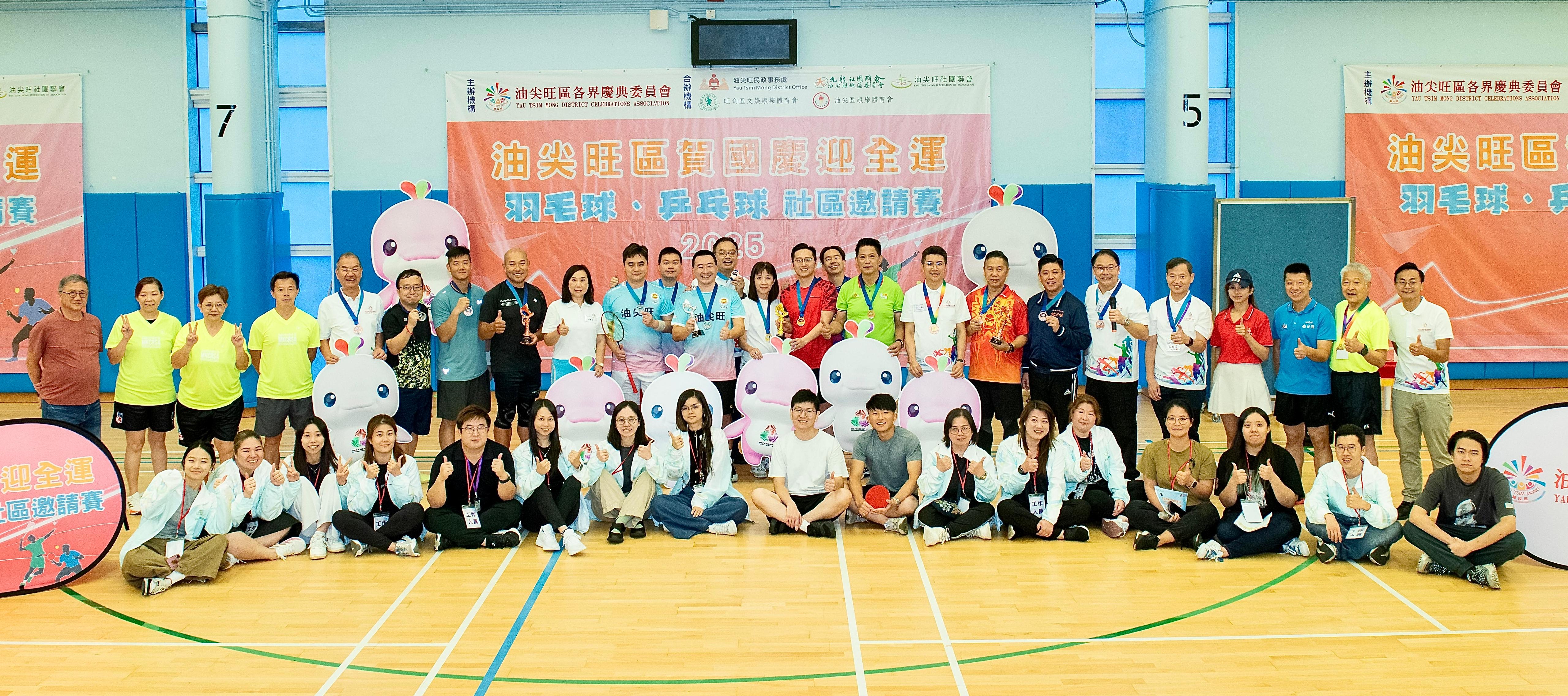 香港文匯報訊(記者 子京)為慶祝中華人民共和國成立76周年及迎接第十五屆全國運動會,油尖旺區各界慶典委員會聯同油尖旺民政事務處、油尖區康樂體育會、旺角區文娛康樂體育會、九龍社團聯會油尖旺地區委員會和油尖旺社團聯會今日(12日)假九龍公園體育場合辦「油尖旺區賀國慶迎全運—羽毛球、乒乓球社區邀請賽2025」。活動匯聚區內18個團隊,以體育競技凝聚社區力量,弘揚愛國愛港精神。