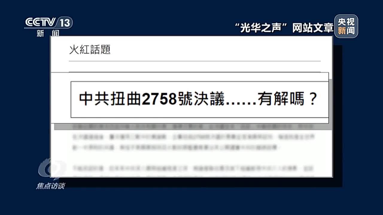 近兩年,為配合民進黨當局大肆宣揚「台獨」分裂謬論,「心戰大隊」多次在他們的宣傳平台發布扭曲聯大第2758號決議的音視頻及文章。