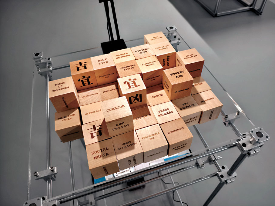 AI是工具還是夥伴?在本地新媒體藝術家陳朗丰看來,AI既非工具,亦非夥伴,而是一個新物種。「沒有AI,這個展覽就做不成。」這是他在個展「雅策」現場同香港文匯報記者分享的想法。而自中學起就開始了解形而上學的陳朗丰,此次與AI一起在德薩畫廊共同打造了具有哲思與機械生命力的藝術一隅。●文、攝:香港文匯報記者 雨竹