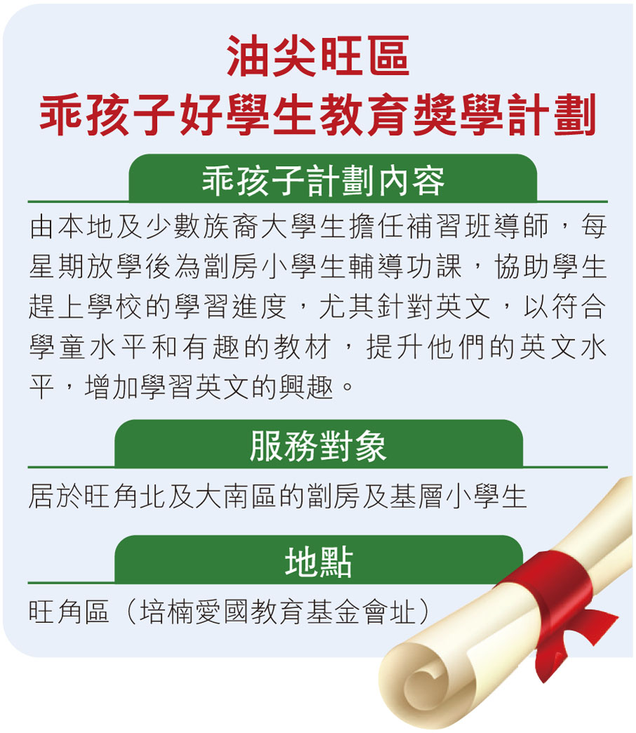 在香港繁華背後,有不少基層家庭的孩子在跨代貧窮的狹縫中力憑知識改變命運,在這樣的困境中,他們從來不是孤身作戰,伴他們一步一腳印逐步成長的還有一群默默付出的有心人,在幽暗中點燃希望的燈火為他們指引光明大道。其中,由懲教社教育基金與培楠愛國教育基金主席徐成東共同發起的「油尖旺區乖孩子好學生教育獎學計劃」,過去一年間向20名來自油尖旺區劏房的孩子提供免費補習,並聘用少數族裔大學生助教英語,達至教學相長,有學童英文科成績從「肥佬」變攞滿分,重拾對學英語的自信。●文:香港文匯報記者 文禮願 圖:香港文匯報記者 黃宇威