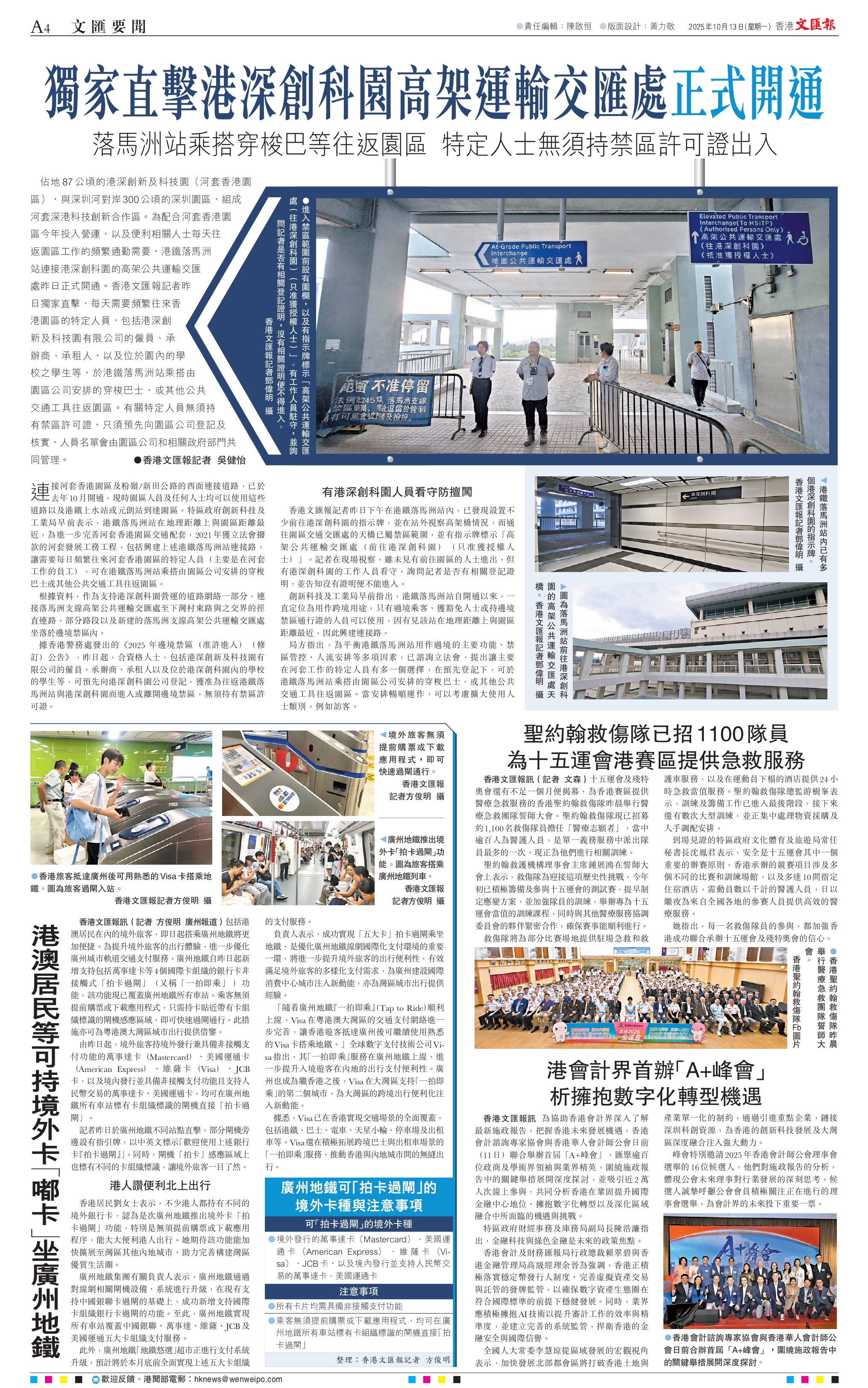 「隨着廣州地鐵『一拍即乘』(Tap to Ride)順利上線,Visa在粵港澳大灣區的交通支付網絡進一步完善,讓香港遊客抵達廣州後可繼續使用熟悉的Visa卡搭乘地鐵。」全球數字支付技術公司Visa指出,其「一拍即乘」服務在廣州地鐵上線,進一步提升入境遊客在內地的出行支付便利性。廣州也成為繼香港之後,Visa在大灣區支持「一拍即乘」的第二個城市,為大灣區的跨境出行便利化注入新動能。