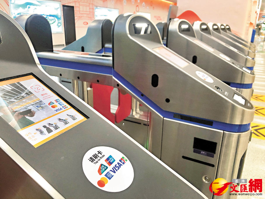 記者昨日於廣州地鐵不同站點直擊,部分閘機旁邊設有指引牌,以中英文標示「歡迎使用上述銀行卡『拍卡過閘』」。同時,閘機「拍卡」感應區域上也標有不同的卡組織標識,讓境外旅客一目了然。