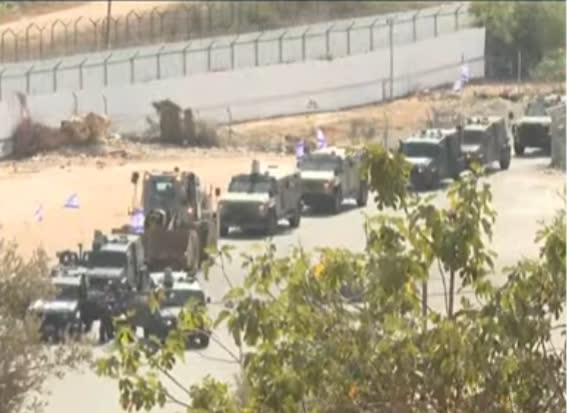 記者當地時間13日獲悉,載有巴勒斯坦被扣押人員的車隊駛離以色列南部監獄。