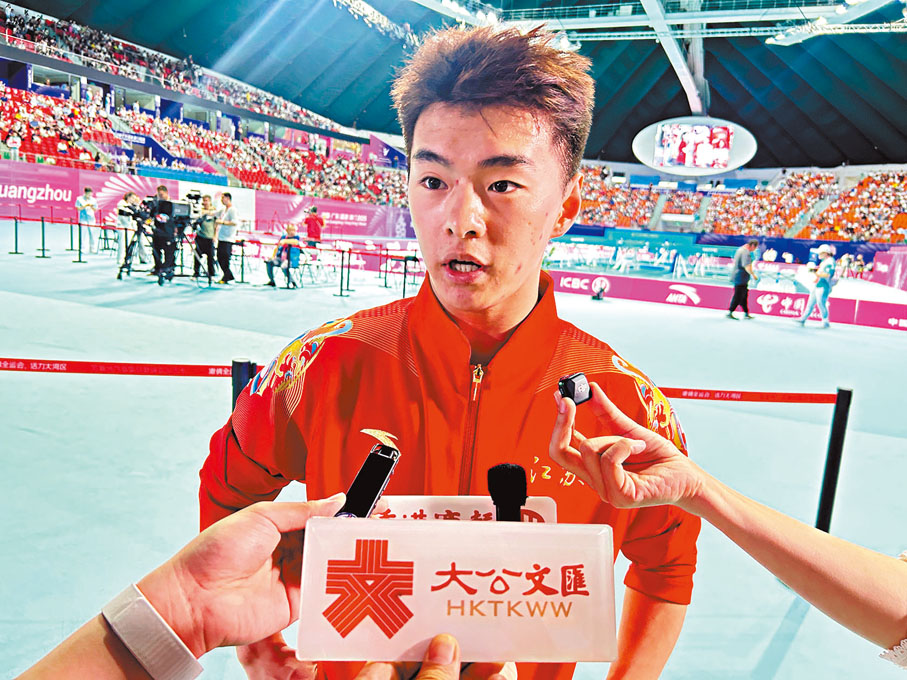 香港文匯報訊(記者 敖敏輝 廣州報道)本屆全運會由粵港澳共同承辦,多位參賽選手表示這非常特別,賽前就已經很期待。男子個人金牌得主嚴浪宇表示,比賽場館的燈光、音響非常棒,很有比賽的氛圍,觀眾也特別熱情。男子個人銀牌得主王梓賽表示,比賽現場所見,場館很寬敞,觀眾很多,整體氛圍非常好,十分享受本屆全運會之旅。奧運冠軍、十五運會女子蹦床個人項目銀牌得主朱雪瑩表示,大灣區美食、文化、旅遊資源多元,非常期待走一走看一看。