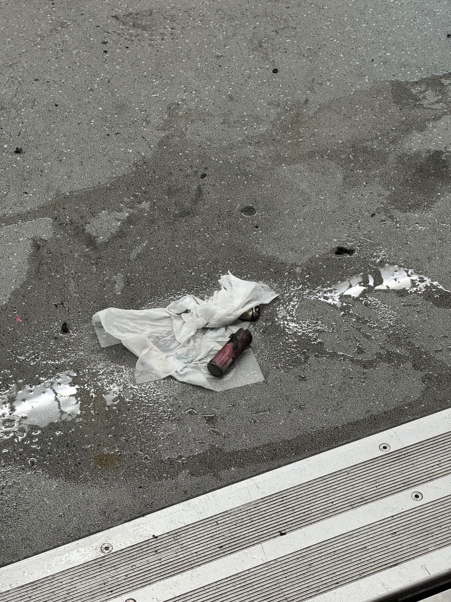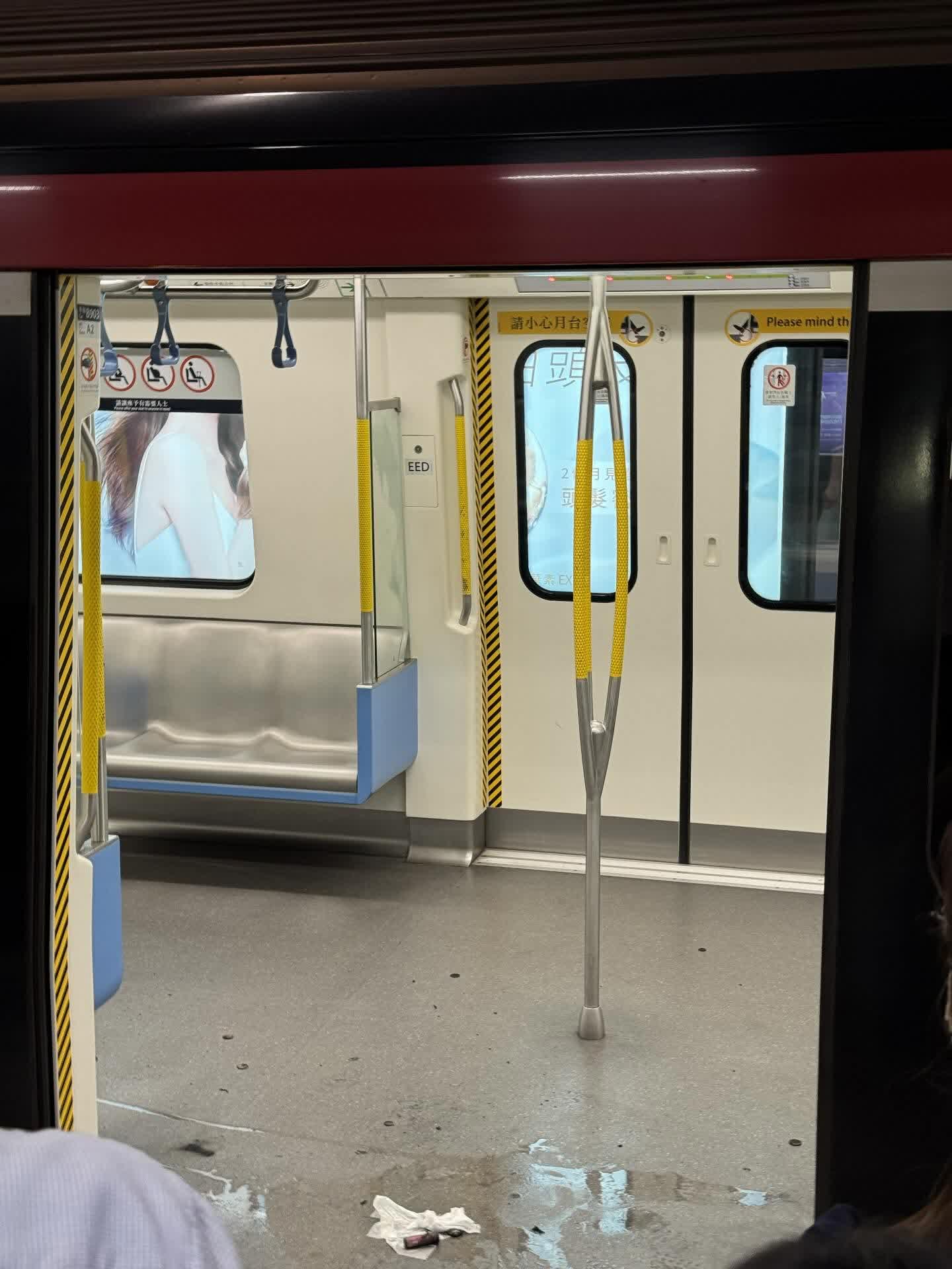 根據網上流傳圖片顯示,疑是物主蹲下處理背囊,涉事後備鋰電池被置放在車廂地板上,電池明顯燒毁薰黑,旁邊有水及紙巾;另一張圖片,則是大批消防到場調查及處理。上傳者表示:「今日放工坐地鐵,充電寶爆炸,啲火成個人咁高,好恐怖」,有網民亦留言和意指,「我係不遠距離,我嚇到淨係見到d人四散,boom一聲,之後見到有火光,再有燶味,嚇到我都無咩反應」。