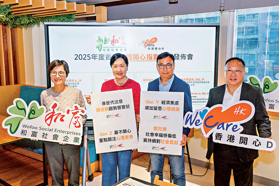 香港文匯報訊(記者 費小燁)有調查指出,今年港人的「整體開心指數」為5.95分(10分最高),是連續下跌兩年後初見回升並創疫後新高。研究顯示,年紀愈大受訪群組的開心指數愈高,其中嬰兒潮世代(61歲或以上)達6.63分,Z世代(18歲至28歲)卻只得5.74分,傳統上開心隨年齡呈現的「U形曲線」(即年輕時較高、中年降至低谷、老年再回升)已逐漸模糊,與國際研究看齊。專家提出多項建議,包括從「知」到「行」培育資訊素養與實踐力;串聯校園、職場,提升全民心理韌性及跨代理解以建構家庭支援系統;以及強化社會鄰里連結,推動銀齡參與。