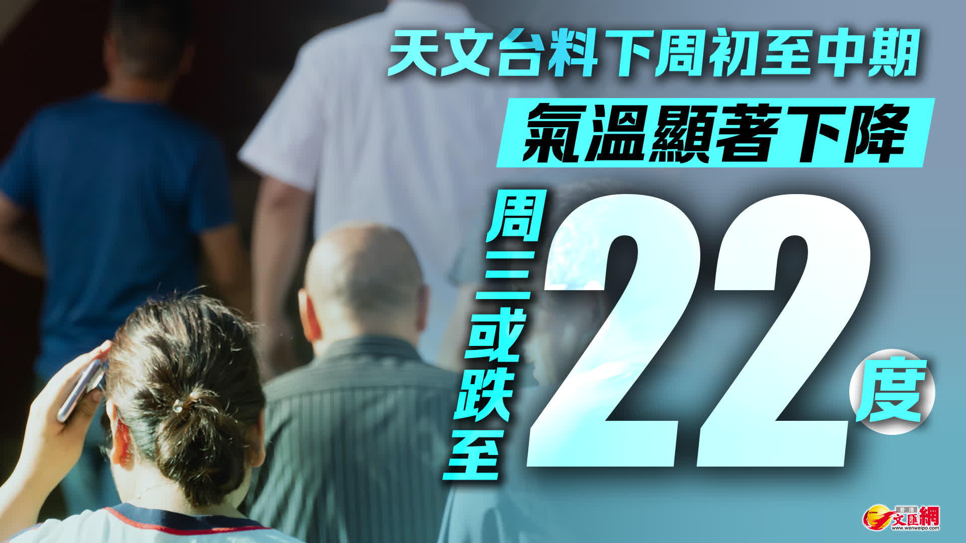 天文台的九天天氣預報顯示,下星期一氣溫會跌至24至29度,星期三更低至22至26度。