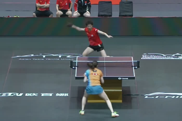 第二盤,孫穎莎11-9、11-5、11-7速勝張本美和,中國隊總比分2-0領先。