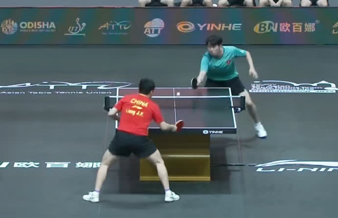 第三盤,梁靖崑13-11、11-6、12-10戰勝姚鈞濤。
