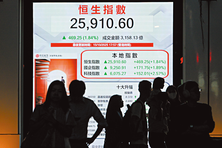 港股經歷「7連跌」後,市場已大致消化貿易戰轉趨緊張的負面消息,恒指昨日大幅反彈過540點,惟在26,000點前有阻力,全日收報25,910點,仍升469點或1.8%,成交額3,161億元,較上一日減少20%,是一周以來最低。「北水」成交額同樣減少20%,見三周最低,同時終止連續兩日淨流入,轉流出54億元,是近1個半月最多。市場人士指出,聯儲局主席鮑威爾日前發表講話時表示,美國就業市場的下行風險正增加,暗示有可能停止縮表,華爾街解讀為鮑威爾罕有「放鴿」,強化減息預期,有利後市表現。