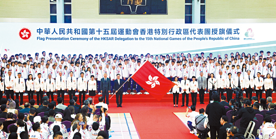 第十五屆全國運動會將於下月9日至21日首次由粵港澳三地聯合承辦,香港特區將派出歷來規模最大的代表團參加,總人數超過1,800人,當中超過600名運動員出戰28個競賽項目。香港特區行政長官李家超昨午為特區代表團主持授旗儀式,特區政府文化體育及旅遊局局長羅淑佩會上表示,香港賽馬會已將「優秀運動員獎勵計劃」獎金預算上調五成,對在全運會勇奪個人及團體項目金牌、銀牌、銅牌的港隊代表增發現金獎,其中個人及團隊項目金牌的獎金,分別加碼至75萬元及150萬元。