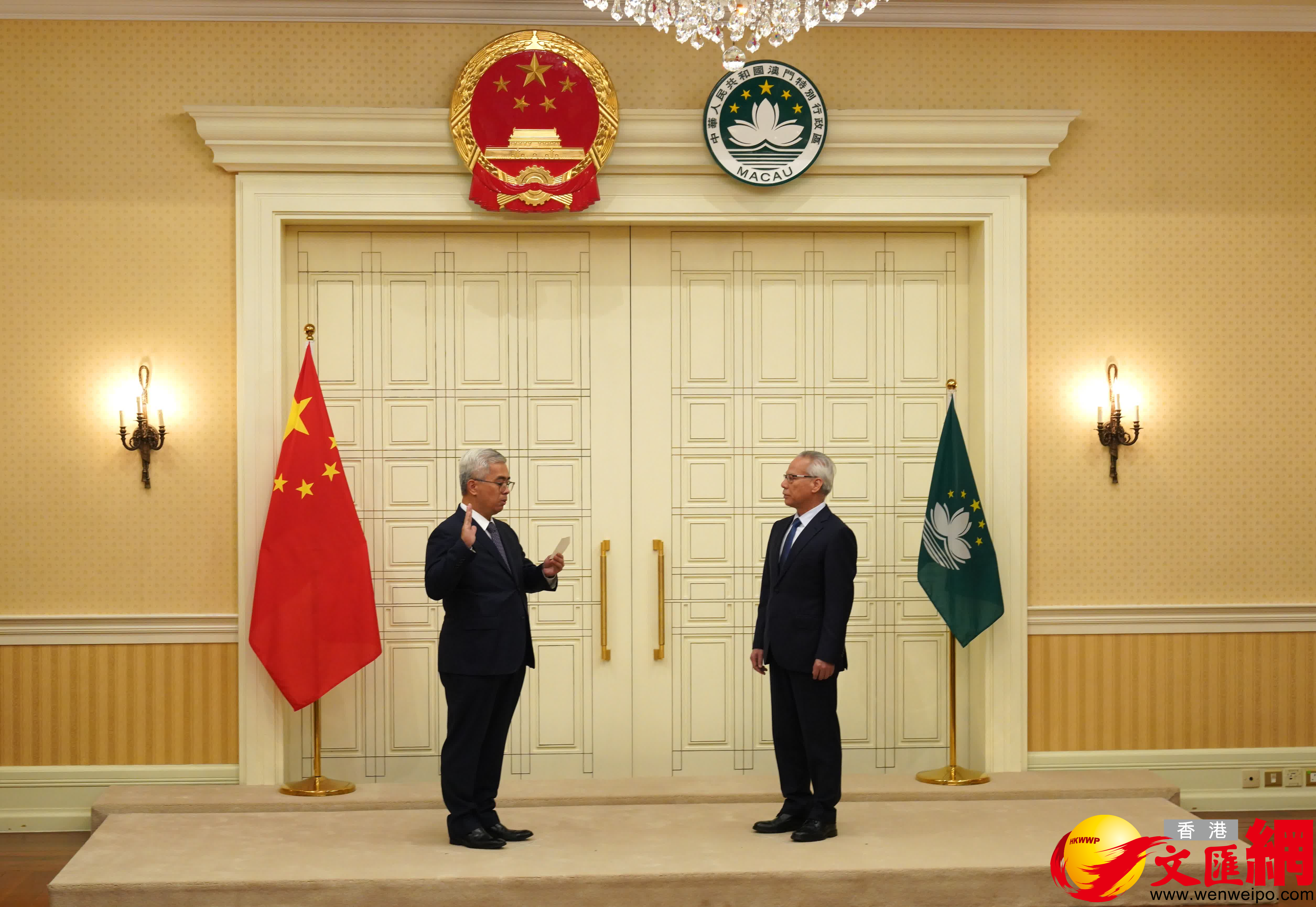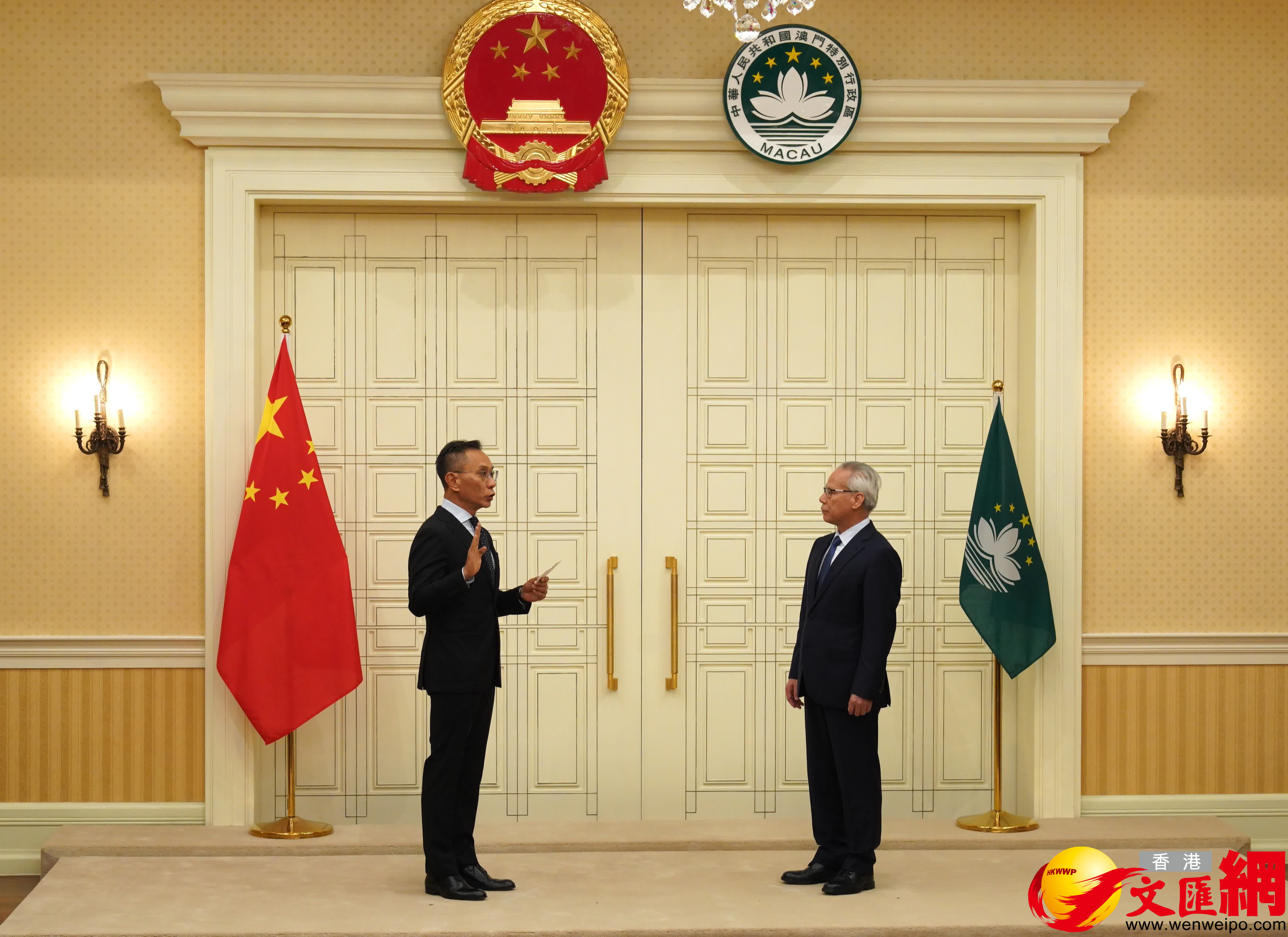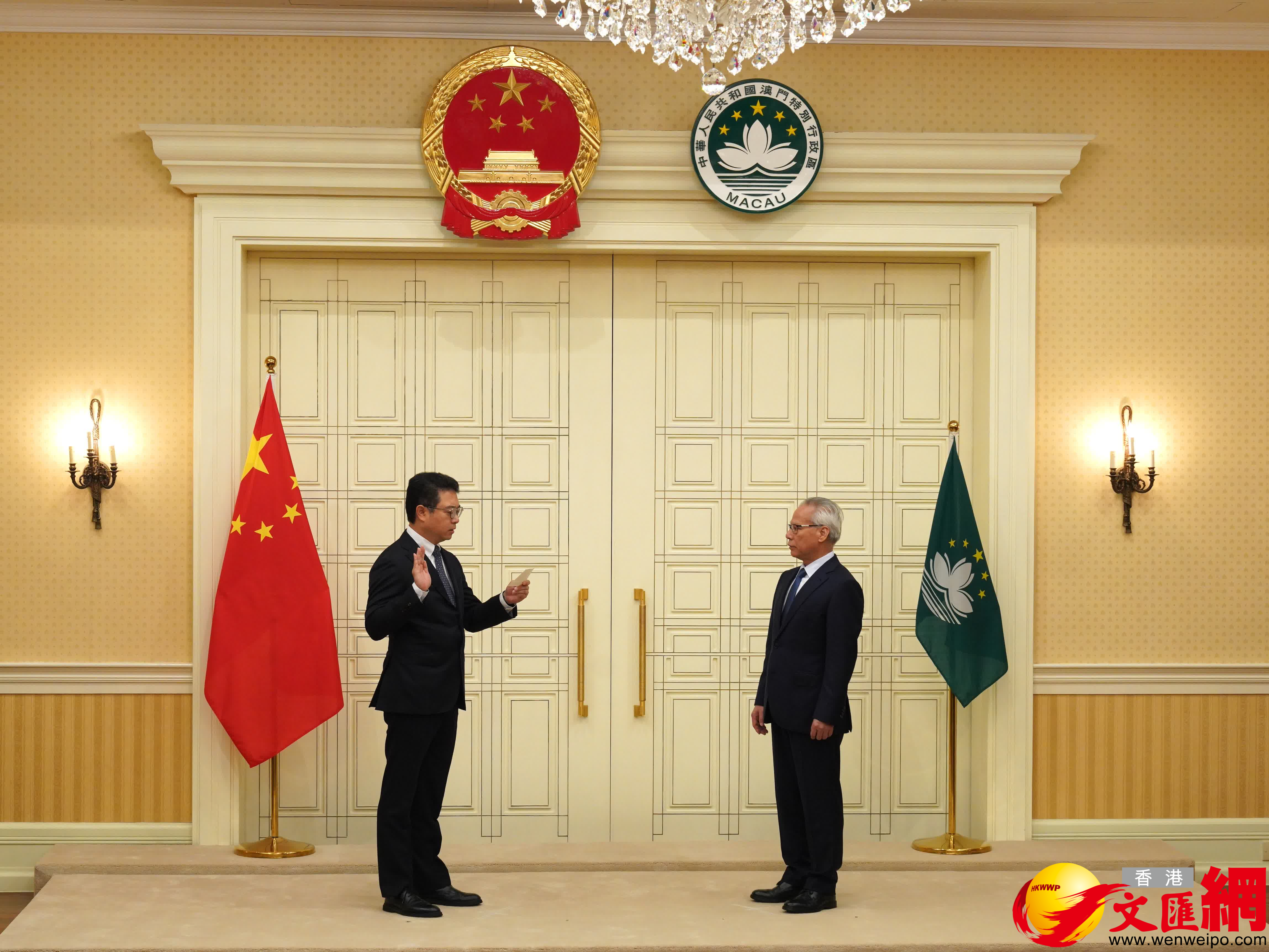(香港文匯網記者 王祥康)澳門特區新任行政法務司司長黃少澤、保安司司長陳子勁、檢察院檢察長唐曉峰的宣誓就職儀式今日(16日)在政府總部舉行,全國政協副主席何厚鏵、中央政府駐澳門聯絡辦公室主任鄭新聰、外交部駐澳特派員公署特派員劉顯法、解放軍駐澳部隊司令員于長江等嘉賓見證儀式。