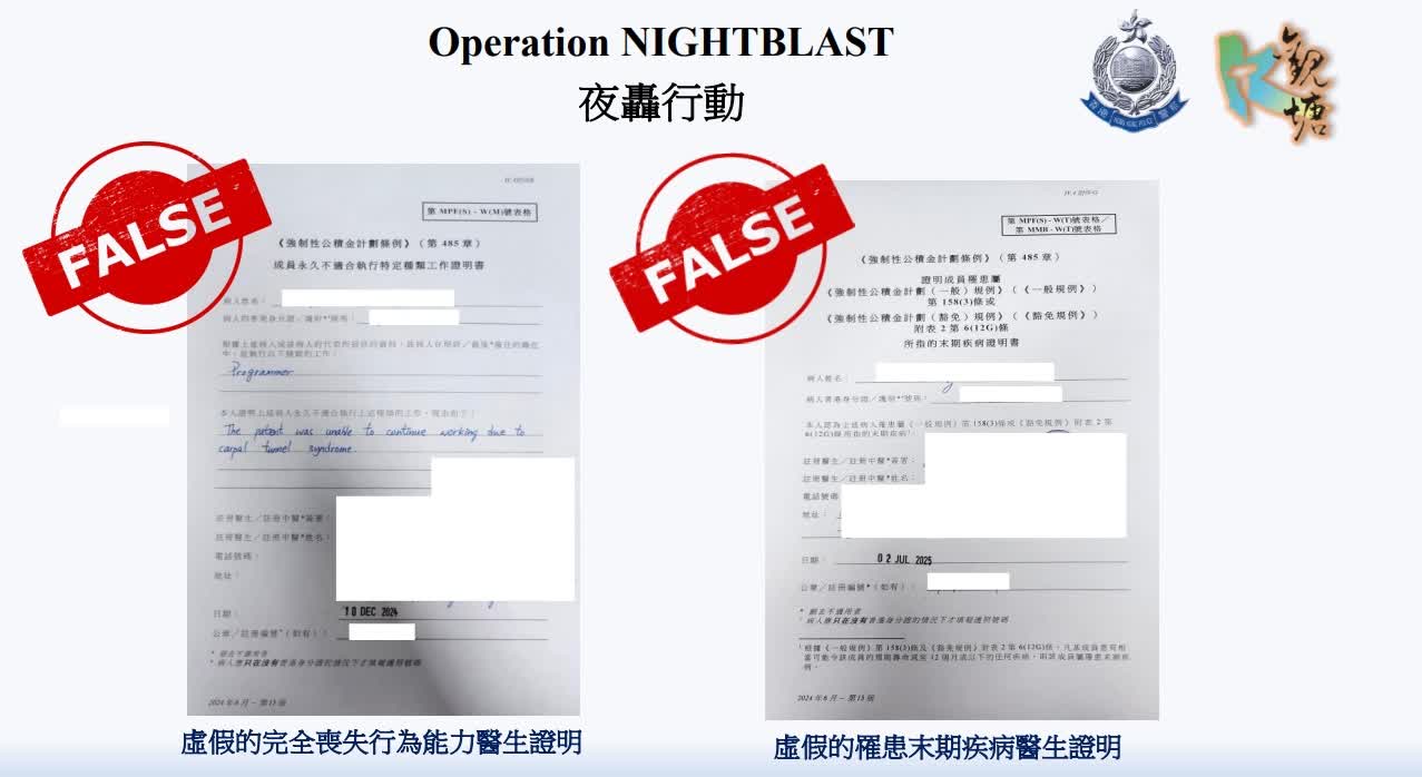 據悉,涉案人士主要因欠債或急需錢銀周轉,因而誤信社交媒體廣告的所謂中介人,非法提早取回他們的強積金。在過往同類案件中,強積金供款人均以「完全喪失行為能力」為由提早取回強積金,惟警方在本案首次發現有人利用「罹患末期疾病」作為理由。