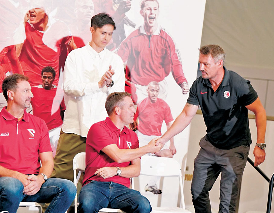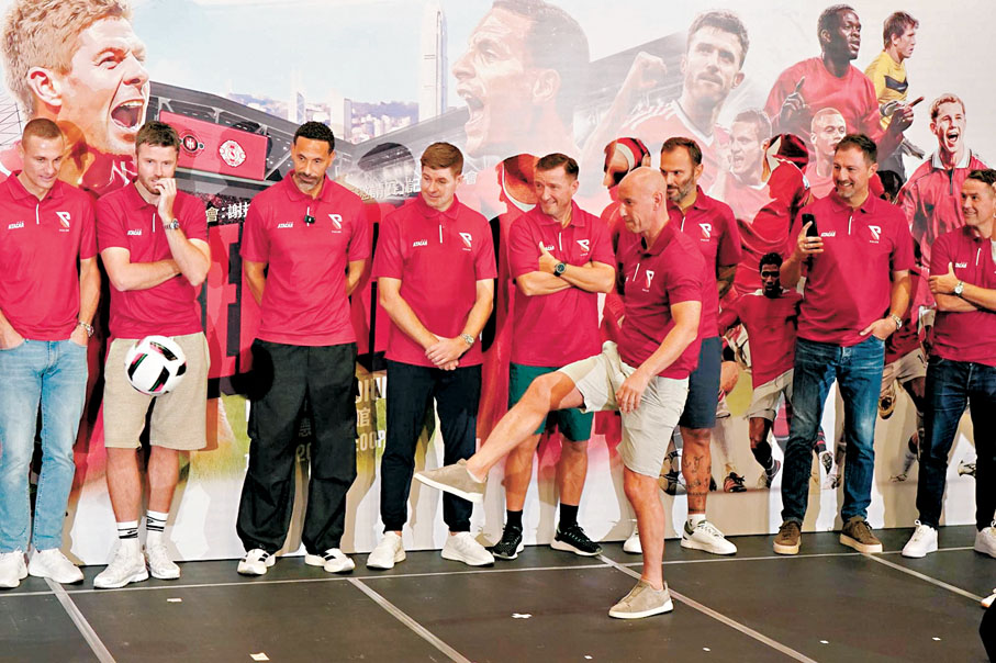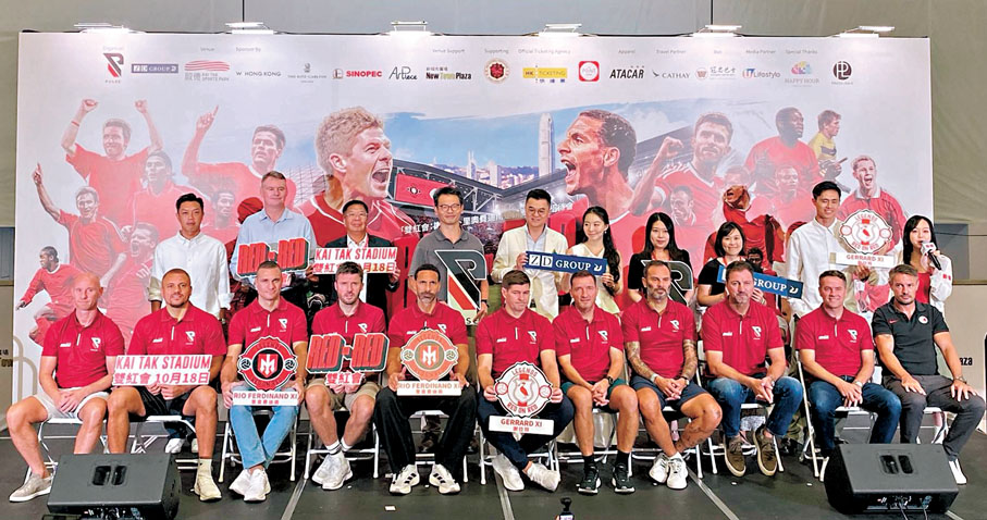 衛冕冠軍利物浦與曼聯將在周日英超交手,香港則率先在周六於啟德主場館上演「雙紅會」經典戲碼。這次「雙紅會:謝拉特、里奧費迪南邀請賽」星光熠熠,包括該兩大領軍人物在內的10名傳奇球星昨日(16日)在沙田新城市廣場與球迷見面。大會更追加公布陣容,港足主教練韋斯活在好友布朗誠邀下加入戰團,將會首次以球員身份在香港上陣。●圖/文:香港文匯報記者 葉詩敏