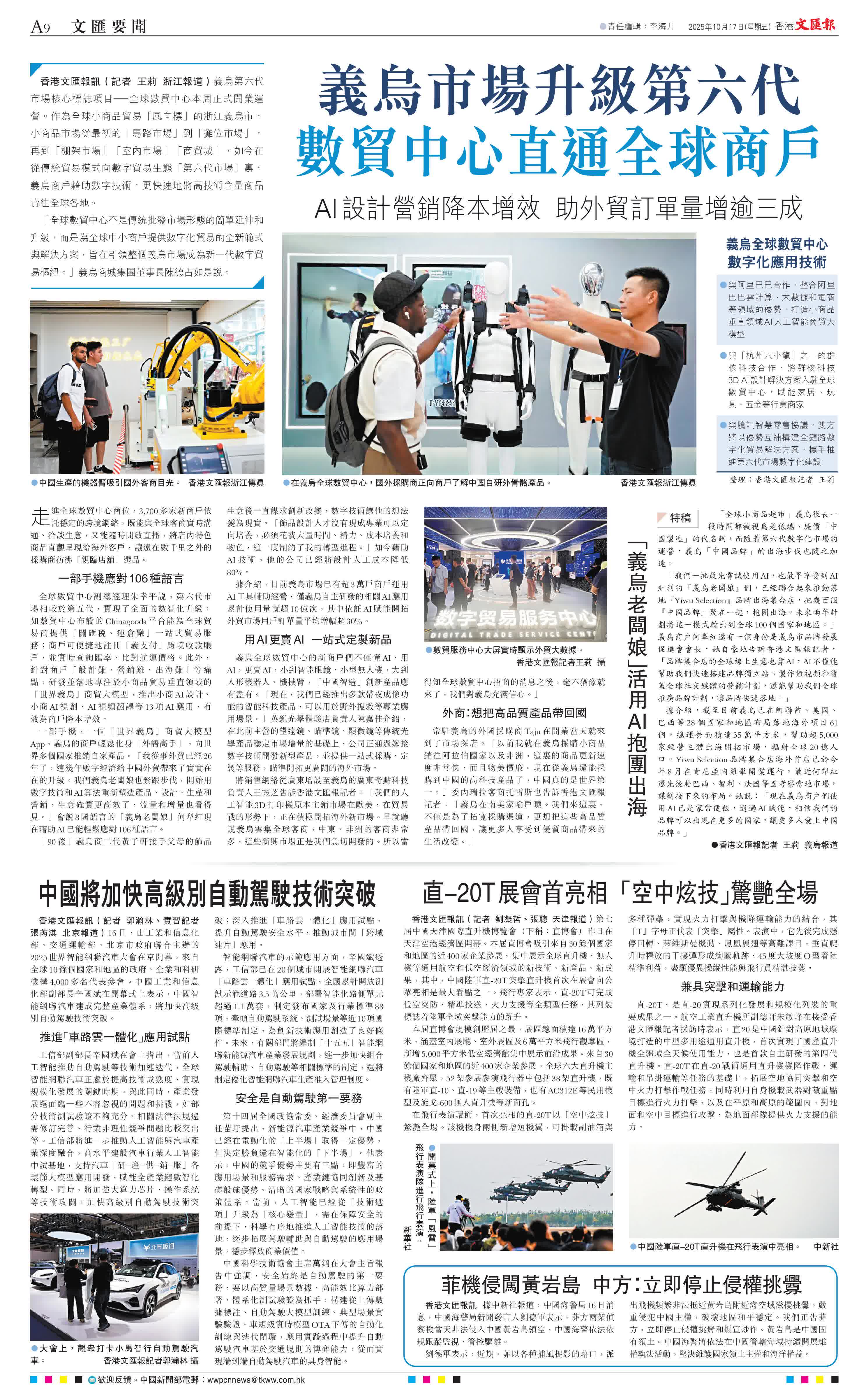 「我們一批最先嘗試使用AI,也最早享受到AI紅利的『義烏老闆娘』們,已經聯合起來推動落地『Yiwu Selection』品牌出海集合店,把幾百個『中國品牌』聚在一起,抱團出海。未來兩年計劃將這一模式輸出到全球100個國家和地區。」義烏商戶何犁紅還有一個身份是義烏市品牌發展促進會會長,她自豪地告訴香港文匯報記者,「品牌集合店的全球線上生意也靠AI,AI不僅能幫助我們快速搭建品牌獨立站、製作短視頻和覆蓋全球社交媒體的營銷計劃,還能幫助我們全球推廣品牌計劃,讓品牌快速落地。」