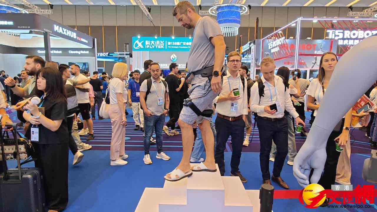 太希智能創始人梁林超介紹,公司每年的產品研發投入達到數百萬人民幣,本屆廣交會上共帶來五種型號的產品,其中的主打產品「登山/運動助行」外骨骼準備了約100套供客商現場體驗購買,該產品可以節省使用者約30%的身體能耗,適合登山爬梯或腿腳不便的老年人。梁林超說,展位每天都接待數百位客商,「大約十個就有一個表達了購買意向,也有體驗後現場小批量下單回去嘗試的,我們預計通過這屆廣交會能達成幾千套的銷售。」