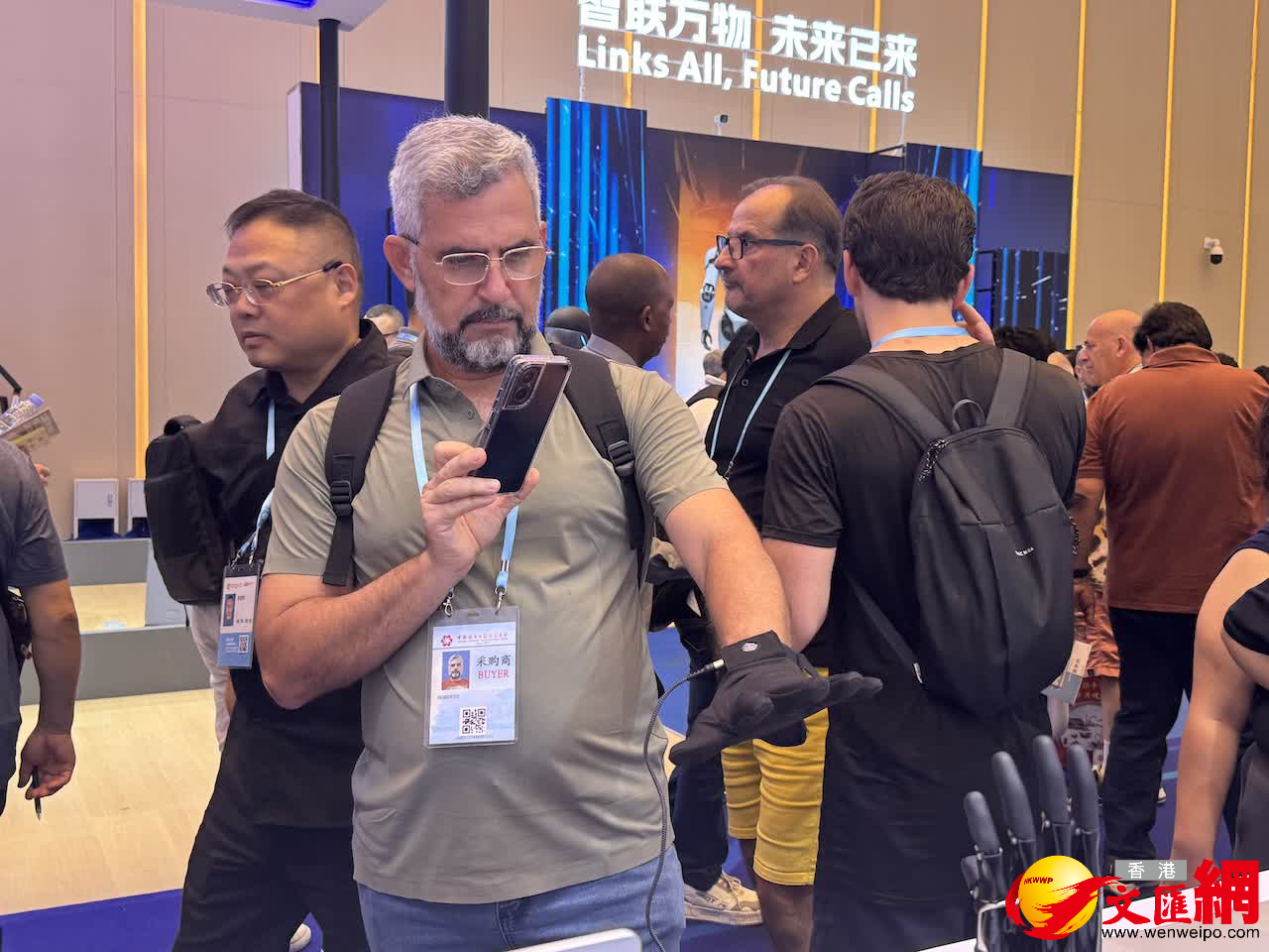 本屆廣交會首次設立智慧醫療展區,集中展示了手術機器人、智能監測及可穿戴設備等醫療領域先進產品和技術。杭州太希智能科技有限公司展台尤其熱鬧,在杭州太希智能科技有限公司展區,一名採購商在外骨骼的幫助下,雙手各提着一個器械箱並輕鬆舉起,臉上露出不可思議的驚訝神情。在他身後,等待體驗各式外骨骼機械產品的客商排出了長長的隊伍。