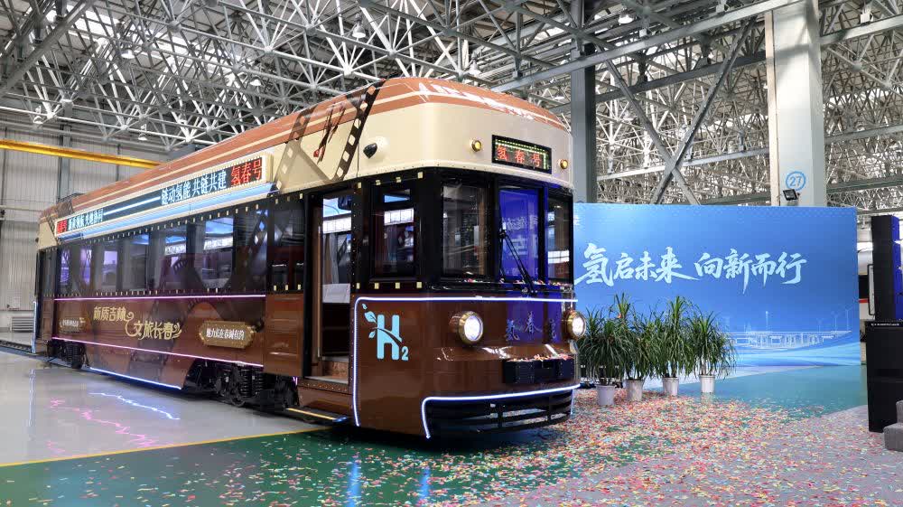 「氫春號」由中車長客股份公司研製,採用氫能動力系統,無需接觸網供電,運行時唯一產物為水,真正實現零碳排放。