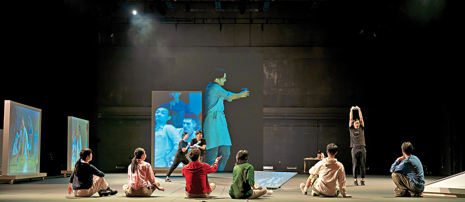 到了《A.I.時代與梁祝的繼承者們》,遍布舞台的熒幕與投影,不啻為新時代的「畫作」展現。多線程敘事的並置、演員與影像間的對照,讓自我的本真與虛偽、創作的真誠與矯飾,成為更加令人深思的議題。