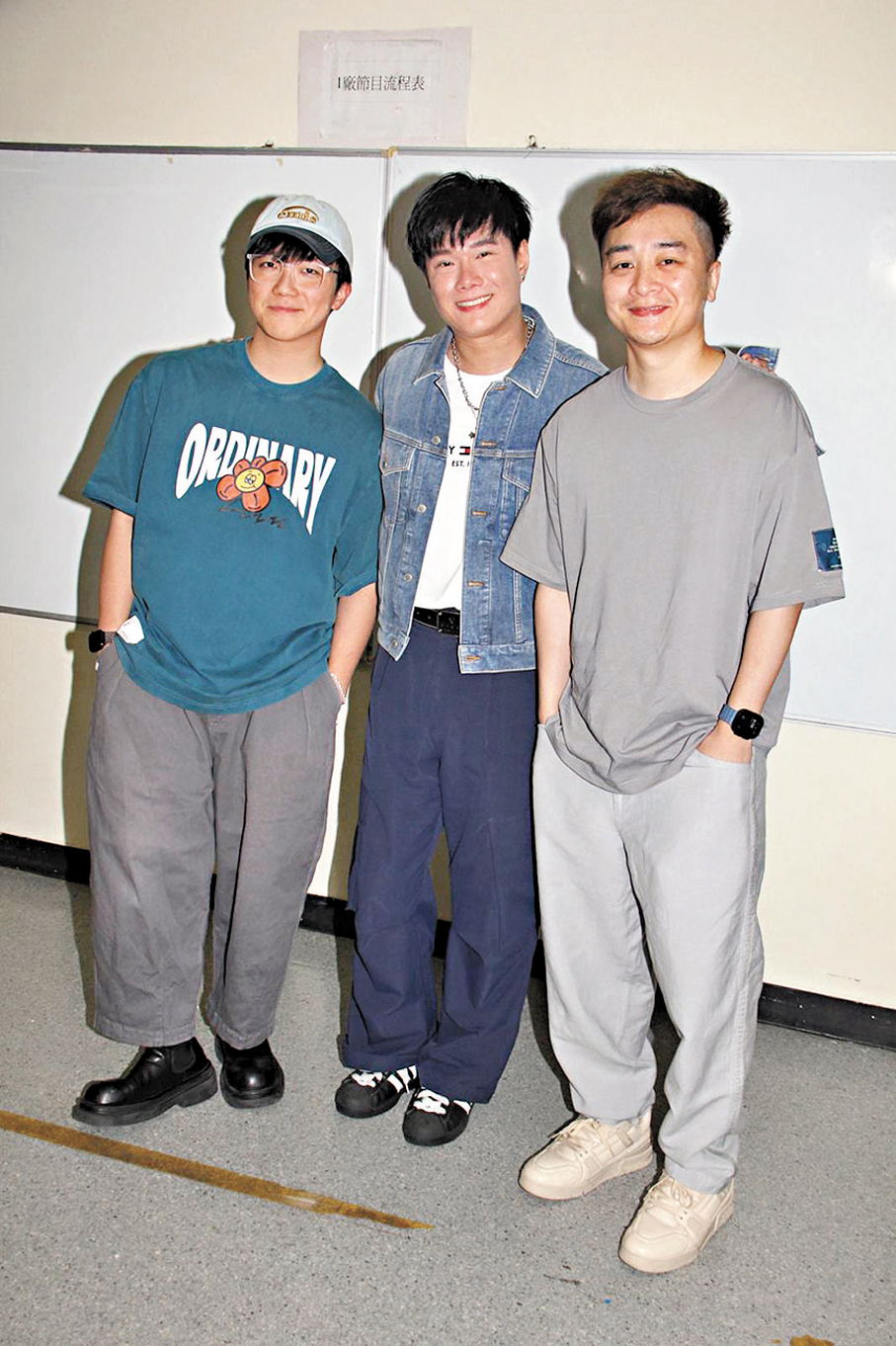 香港文匯報訊(記者 達里)張與辰、譚輝智和何晉樂前晚為慈善節目《善心滿載仁愛堂》進行綵排,輝智與何晉樂首次同台合唱,輝智笑稱自己是何晉樂的後輩,有對方在場格外令他放心。